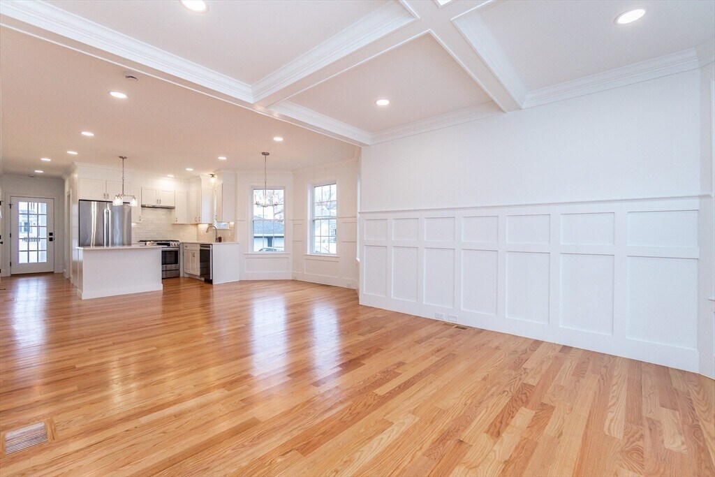 Jamie Thompson20 Sheridan Ave is a 4 BR 2.5BA condo that was taken down to the studs and the basement dug out to completely redesign the space. The main floor consists of an open concept living, dining, and kitchen area with oak flooring, and coffered ceilings. Two bedrooms are on this floor as well as a full bath, powder room and laundry. Downstairs, there is a bonus living room, two bedrooms, and a full bath with a custom-tiled shower. The kitchen consists of white shaker cabinets, quartz counters, and stainless steel appliances. Enjoy a private rear deck. The systems for the unit include a high-efficiency gas HVAC, Navien tankless hot water, and a Simplisafe security system. Convenient to 93, as well as the Orange and Green line and the Commuter Rail. Pictures virtually staged
