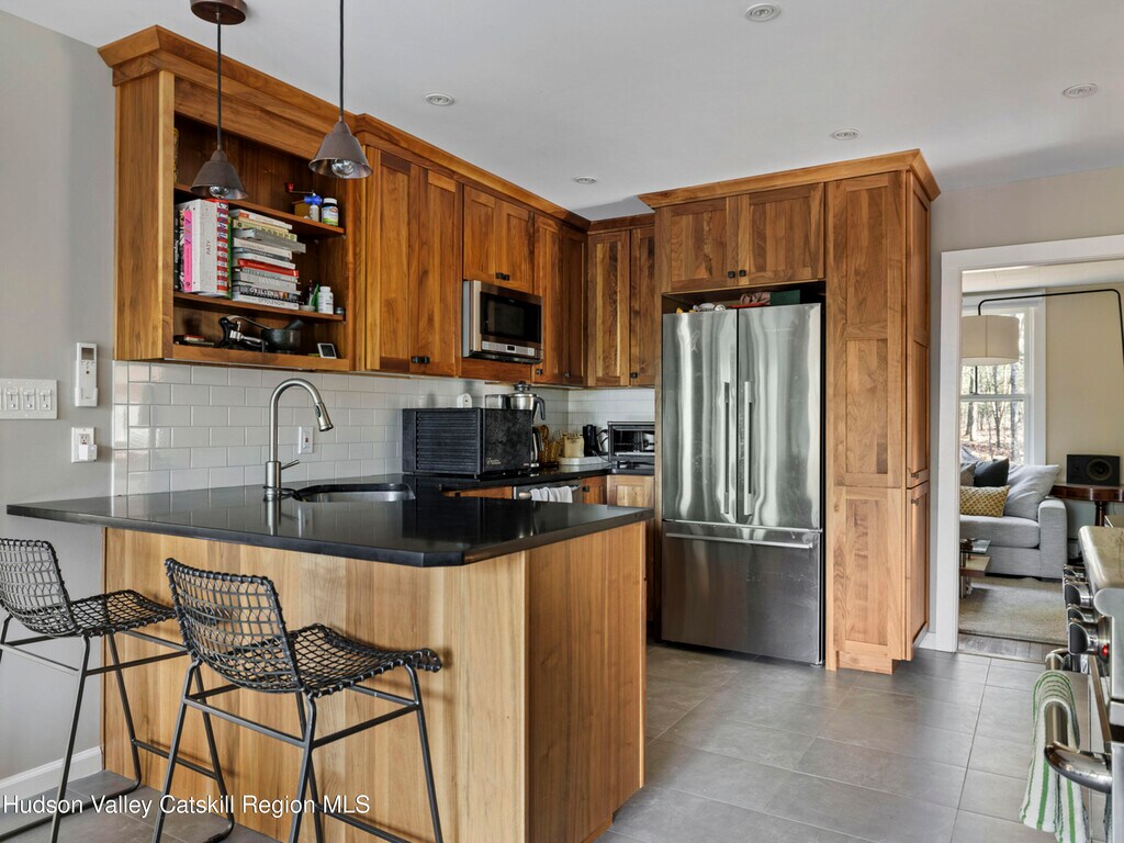 A great opportunity to live,work,and play in Woodstock! This charming,3 bed,2 bath home,is located a stone's throw away from downtown Woodstock and offers a wonderful private spot to enjoy all the area has to offer. With plenty of light and open plan,this home features a first floor bedroom and full bathroom. Going up the renovated stairs,you will find two bedrooms and a newly added luxurious bathroom with shower and soaking tub.,The center of the home is a well appointed chef's kitchen that leads to a stone patio that overlooks a beautiful perennial garden. The outdoor grill is right off the kitchen,allowing for easy entertaining year round. A sun filled office space is off the kitchen,where you can see the large completely fenced in yard with tree house and play area. There are lovely seasonal reservoir views from the home! Cozy nights can be enjoyed by the wood burning stove in the paneled living room with beautiful light from a bay window. Its the perfect hang out spot to unwind from the day. This lovely property comes fully or partially furnished per your needs and is available and ready for a quick move in so you can spend the holidays and beyond! Sherman Road is located close to all the amenities and attractions you'll ever want and need for upstate living. Just 2 hours from the George Washington Bridge,5 minutes to the Woodstock town and it's creative,community vibe is surrounded with desirable ski resorts,art,culture,hiking,restaurants and many other hot spots to explore year round. Available for seasonal or year round rental,come and see this beautiful property today! (The accessory cottage on the property is currently rented.)