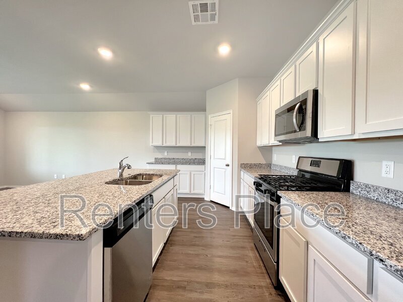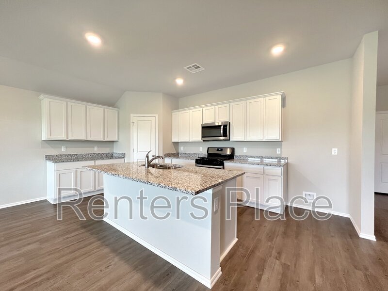 Discover modern living at its finest in this brand-new 4-bedroom, 2-bathroom home at 20 Stonegate Dr, Pryor, OK 74361. With 2,045 square feet of thoughtfully designed space, this never-before-lived-in home is perfect for those seeking style, comfort, and convenience. The open-concept layout seamlessly connects the kitchen, dining room, and living room, creating an inviting space for daily living and entertaining. The gourmet kitchen boasts stainless steel appliances, granite countertops, a 4-inch granite backsplash, a large island with a deep single-bowl sink, and a corner walk-in pantry for ample storage. The living room fills with natural light and leads to a spacious covered patio, perfect for outdoor relaxation. The main bedroom suite is a private retreat featuring a huge walk-in closet, dual vanity sinks, and a luxurious 5-foot walk-in shower with subway tile surround and chrome fixtures. Additional features include luxury vinyl flooring in the entry, living areas, and kitchen, ceramic tile in the bathrooms, faux wood window blinds, and a professionally landscaped front yard. Located on an oversized homesite, this home includes a lighted front porch and back patio, offering both functionality and curb appeal. With natural gas and contemporary finishes throughout, this home is move-in ready and waiting for you. Garage door openers are not installed. Pet Details: See approved breed list at