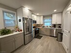 Tastefully updated and brimming with character first-floor apartment. Set in a prime location in Summit offering one bedroom plus a spacious bonus room, a modern bathroom, and private entrance. Kitchen features new stainless steel GE appliances, white cabinetry, quartz countertops, and a contemporary tile backsplash. High ceilings and large windows create a bright, airy feel, while ample closet space provides plenty of storage. Central air and heat ensure year-round comfort, and private washer and dryer in the basement. Enjoy access to the side yard for outdoor space. Shared driveway parking for one car and additional basement storage are included, with off-street and on-street parking also available. Located on a quiet residential street near Overlook Hospital, this home offers easy access to downtown Summit, Short Hills Mall, and major highways. A short walk to town and train.