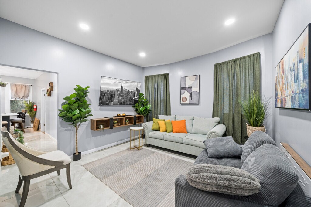 Feel at home in this bright and comfortable 6-bedroom, 2-bathroom home in Bayonne, perfect for families and groups visiting New York City. This home offers generous living areas with cozy seating and a large smart TV. The fully equipped kitchen is designed for cooking for large groups. There are six comfortable bedrooms and two full bathrooms stocked with fresh towels and toiletries. Extra air mattresses and bassinets are available on request. Street parking is for residents only. Located in a vibrant, walkable neighborhood with coffee shops, restaurants, and corner stores just steps away. Stroll Bayonne’s tree-lined sidewalks, or hop on the light rail to explore Jersey City, Hoboken, or head straight into Manhattan. Major attractions like the Statue of Liberty ferries, Jersey Gardens Outlet Mall, and American Dream Theme & Water Parks are all within a short drive. Cape Liberty Cruise Port is 5 minutes away, Newark Airport is 15 minutes away, and Downtown Manhattan is a 25-minute drive or 45 minutes by public transport. A 4% transaction fee may apply in the event of a cancellation or refund request. This fee is charged by the payment processor and is non-refundable. You’ll have private access to the entire home via your own entrance. The host is happy to help with recommendations or arrangements but also respect your privacy—interaction is entirely up to you. Registration Number: STRL-25-0023 [SI]