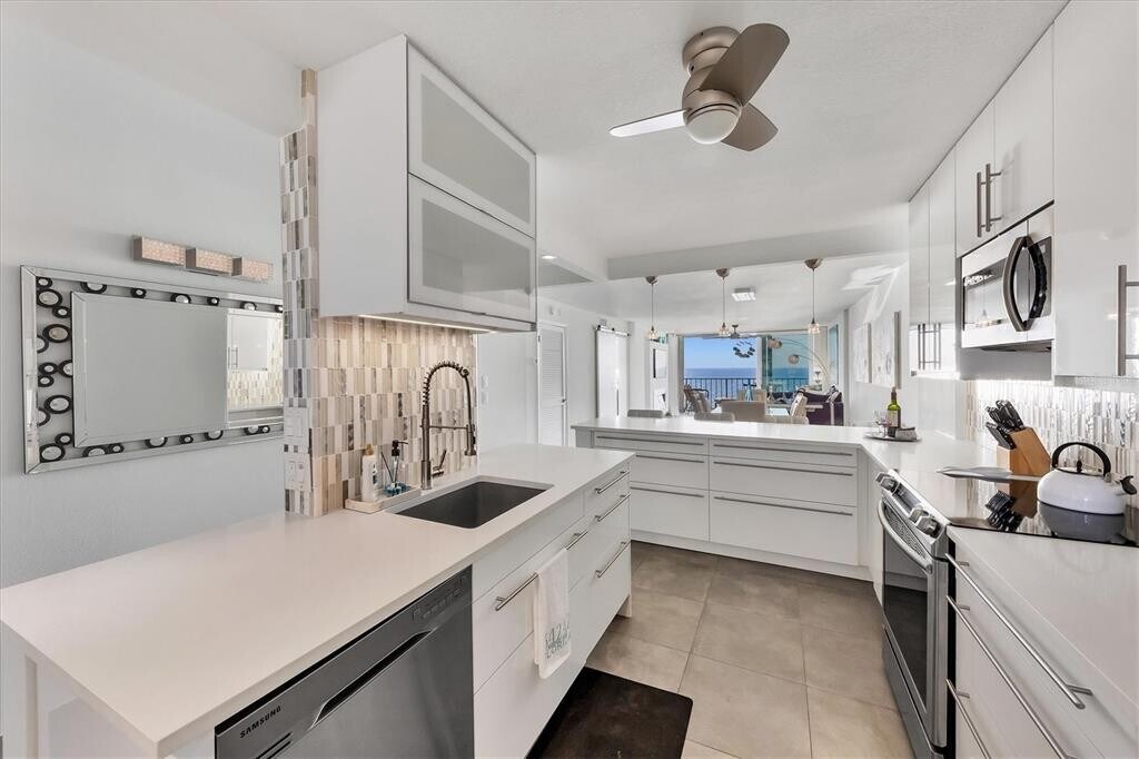 Looking for the perfect vacation get-a-way with expansive views of the Gulf of Mexico? Do you long to fall asleep to the sounds of the surf? Look no further than this stunningly remodeled 2 bed,2 bath condo in the Whispering Sands Community. This wonderful 55+ community offers you the convenience of village living but is very peaceful and private at the same time. Leave the hustle and bustle of life behind. As you exit the elevator to your floor,you will be surrounded by gorgeous views of the village,the bay and the gulf! Once inside,you will have full Gulf views from just about every room. All tile through-out,the main living area is well outfitted with comfortable seating,a custom-built cabinet housing a fireplace and large screen TV,great for movie night! There is dining for six or more with elegant custom lighting,and a breakfast bar with seating for four. The kitchen is a cook's dream featuring Quartz counters,high-gloss cabinets,newer appliances and additional eating space. The primary suite offers a king bed,and a walk-in closet. The primary bath has dual sinks and a lovely custom shower. The guest bedroom has a Queen bed,and there is a beautiful guest bath. Both the main living area and the primary bedroom feature sliders out to the patio,overlooking the azure water of the Gulf,where you can sip your morning coffee,or take in a fabulous sunset! Not only do you have 800 waterfront feet of private beach,but you also have your choice of two sparkling heated swimming pools,one on the beach and one overlooking a peaceful lagoon. This immaculately maintained community has it all,you have a Tiki Hut on the beach,outdoor grills,shuffleboard,a clubhouse with full kitchen and a fitness room. Just MINUTES to SIESTA KEY VILLAGE,take the private gate,located just behind Davidson's Drugs,to the Village for all your shopping and dining needs. Don't wait to reserve this amazing rental,available for longer term rentals as well as short term. Welcome to paradise! (Booked January through end of March 2026) MLS# A4562777
