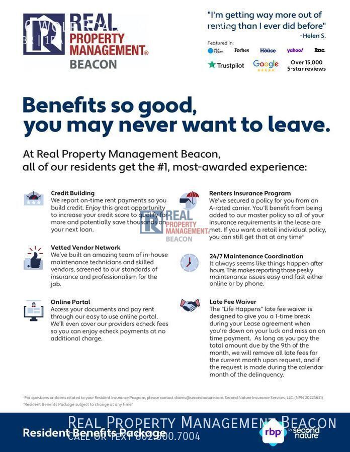 Lebanon 2 Bed, 1 Bath Boulders Condo $1650 includes heat Available 06/15/2026 Tenant responsible for electric, cable and internet Landlord responsible for heat, trash removal, snow removal and lawn care Appliances included: refrigerator, dishwasher, electric stove and Coin Op Washer and Dryer on site. Short drive to downtown Lebanon, DHMC & Hanover/Dartmouth. Near Advance Transit bus stop. $1650 rent, $1650 security deposit No pets. No smoking. $45 Rental application fee required per applicant. Real Property Management Beacon residents are enrolled in a Residents Benefit Package (RBP) for $39.95/month, which includes renters insurance, credit building to help boost your credit score with timely rent payments, a personalized online portal, and more! More details upon application. Real Property Management Beacon 1 School St - OFFICE Lebanon, NH Visit our website for status updates and more available rentals! Heat Hoa Fees Lawn Care No Real Estate Taxes Snow Plowing Trash Removal Water & Sewer