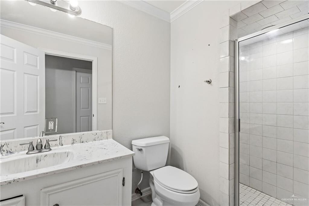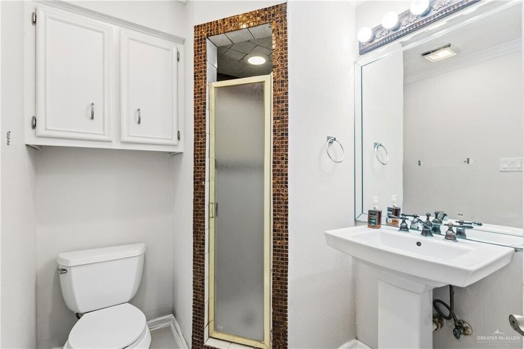 Custom-built home on a quiet North McAllen corner lot. Remodeled in 2012 with energy-efficient upgrades,including foam insulation. The home offers continuous flooring throughout and a Cantera wood-burning fireplace for a warm,inviting touch. The layout includes two formal living areas and a comfortable dining room,providing functional space for daily living or hosting. The kitchen features granite countertops along with practical prep and storage space. The primary suite is located downstairs and includes his-and-hers closets,a small private den,and direct patio access. A guest bedroom with its own bathroom is also on the main level,while two additional bedrooms upstairs share a full bath. Outside,the backyard offers a peaceful setting with a small waterfall feature—ideal for relaxing or outdoor dining. The HVAC system is completely new,adding value and peace of mind. This home is move-in ready and well-maintained. Schedule your showing today.