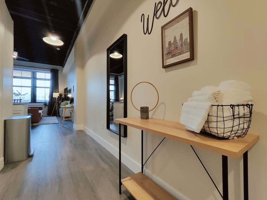 Feel at home in this studio apartment located in Philadelphia’s historic Germantown. The Wayne Junction train station is next to the building. This contemporary apartment with an urban design is fully furnished and features a king-size bed, a sofa bed, a fully equipped kitchen with a Keurig coffee maker, a refrigerator, freezer, stove, oven, and microwave. Also included are a 4K HDTV, central AC and heating, and an in-unit washer and dryer. Parking for one vehicle is included. Additional guest parking is available upon request. Nestled in Philadelphia’s historic Germantown area, this apartment offers a unique blend of history, culture, and urban energy. Along cobbled Germantown Avenue, you’ll find 18th-century homes, charming taverns, indie boutiques, and cozy cafés housed in traditional storefronts. History lovers will appreciate Wyck House, home to the country’s oldest rose garden, and the Cliveden mansion. Staying here places you in a prime location to explore Philadelphia’s rich history, culture, and vibrant city life with ease. Wayne Junction Station is just a short walk, connecting you to Center City and beyond via SEPTA’s subway and regional rail lines. Philadelphia International Airport (PHL) is just a short drive away, offering convenient domestic and international travel. There is easy access to Roosevelt Boulevard (US-1), I-76, and I-95 ensuring a smooth commute to downtown Philadelphia and surrounding areas. SEPTA bus and regional rail lines provide quick and affordable access to Center City, University City, and beyond. The Broad Street Line (subway) connects you directly to major hubs like City Hall, the Sports Complex, and Temple University. Close to Temple University, La Salle University, and Drexel University, making it ideal for students, faculty, or visiting families. Einstein Medical Center and Temple University Hospital are within reach for medical professionals and visitors. This apartment is in a City/Urban setting, and there is potential for residual noise from many different areas of the building. You will hear occasional horns and noise from the Wayne Junction train station next to the building. Guests must be 25+ years of age to make a reservation. Smoking or open flames are prohibited, and violations will result in a $1,000 charge, possible cleaning fees, and a $500 ozone treatment. Parties or events are not allowed. Quiet hours are after 10:00 PM. Only the number of guests listed on your reservation are allowed, and unauthorized extra guests will incur a fee. Pets are not allowed without prior written consent. For stays of 30 days or longer, a professional cleaning is required at least once per month, and the corresponding cleaning fee will be automatically charged. Guests are responsible for disposing of their garbage during their stay by local guidelines. Any fines or fees related to garbage disposal or any automotive waste issues imposed by the apartment complex or local authorities during your stay are the guest’s responsibility. Monthly inspections are conducted to ensure the property remains well-maintained, and you will be notified at least 24 hours in advance of any inspection. Undisclosed guests not included in the official confirmation can place your stay at risk for early termination without a refund and/or a charge of $50 per guest/pet per night. The undisclosed pet fee is $500. Guests are required to complete the digital boarding pass before check-in. Check-in is any time after 4:00 PM, and check-out is by 10:00 AM. A late check-out fee of $75 for every 30 minutes beyond the 10:00 AM check-out time will be charged. Includes a dedicated workspace and dedicated Wi-Fi. [SI]