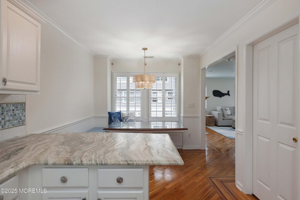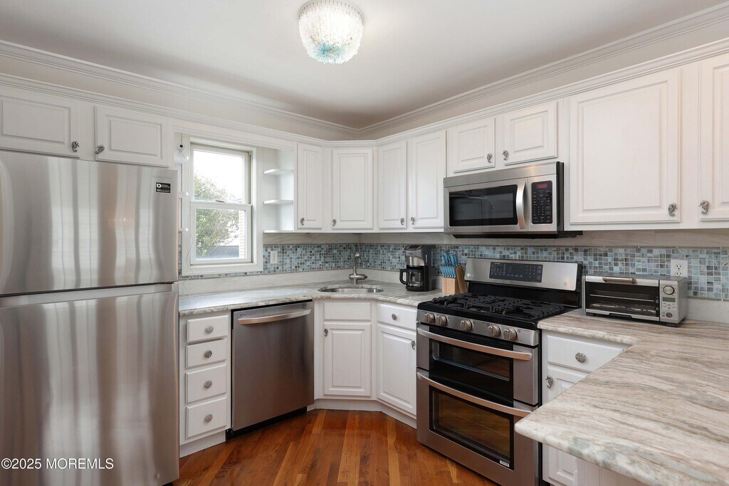 Rarely available fantastic location in the quiet northern edge of Belmar. 1 block from the boardwalk,beach and Shark River Inlet. The townhouse is offered fully furnished with 3 bedrooms and 2.5 bathrooms. First floor consists of a direct entry single car garage provided with beach cruisers and beach chairs. Enter the house and find a guest bedroom with a trundle bed and adjustable height desk and a full bathroom. Second floor has a large sectional couch,sitting area,eat in kitchen with island and a sunny balcony with plush chairs. The third floor has two spacious bedrooms with walk in closets and a remodeled master bathroom. Master bedroom has a king size bed and the second bedroom has a sitting area and bunk beds. Master bedroom even has a sliver of ocean view!
