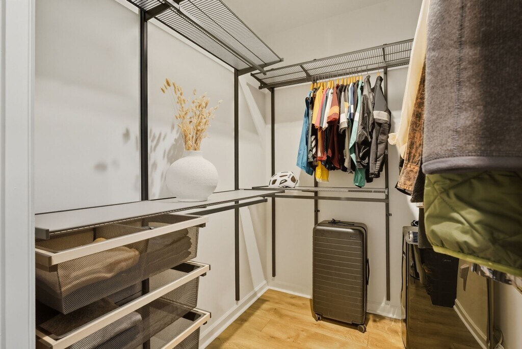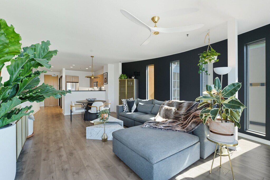 Discover this stylish residence in Oakland’s vibrant Jack London Square, combining modern comfort with a highly walkable location. The home offers a spacious primary suite plus a versatile den, ideal for a home office or guest room. A massive custom Elfa closet system enhances storage, with a second Elfa-organized closet in the primary for added convenience. The large bathroom is thoughtfully designed with its own Elfa organization system, while the home showcases custom window blinds, ceiling fan, designer lighting, and beautiful flooring throughout. Additional highlights include in-unit laundry and a private balcony off the primary suite with peekaboo water views. Enjoy the best of Jack London Square living with dining, entertainment, waterfront trails, BART, Amtrak, and the Alameda/SF Ferry just steps away. // Furnished amenities included: - West Elm, Harmony Modular 3-Piece Ottoman Sectional - Rove Concepts, Gallus Dining Table - Samsung, 75" Class Q80C QLED 4K UHD Smart Tizen TV ( wall mounted - primary suite ) - LG, 65" Class G1 Series OLED evo 4K UHD Smart WebOS (wall mounted - bedroom ) // Water, garbage and sewage included. Owner pays HOA.