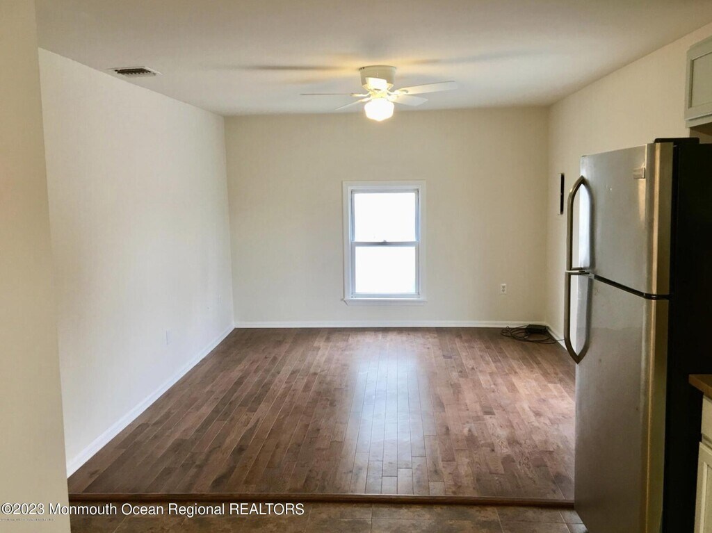 ANNUAL RENTAL - AVAILABLE EARLY APRIL - One block from the beach in Asbury Park. This 3rd floor apartment offers 2 bedrooms,2 bathrooms,and just under 1,000 sq ft of living space. The primary bedroom features multiple closets and an attached bath. Off the other side of the foyer is a full bathroom and full-size in-unit washer/dryer. The eat-in kitchen has a tile backsplash and stainless appliances,opening into the living room. Ocean views from both the primary bedroom and the living room. Shared front porch. Pets considered on a case by case basis