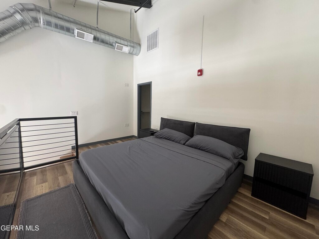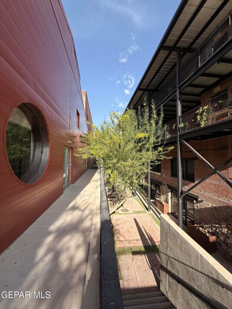 Experience elevated downtown living in this modern industrial-style loft located at 200 Anthony Street,just steps from the Chihuahuas Stadium and within walking distance to the Paso del Norte Hotel,restaurants,bars,and nightlife. This unique unit features soaring ceilings,exposed ductwork,and a striking open-concept design with a lofted bedroom overlooking the main living space. The sleek interior includes concrete floors,custom wood staircase,and contemporary finishes throughout. The kitchen is equipped with stainless steel appliances,modern cabinetry,and clean lines that complement the urban aesthetic. The spacious living area is filled with natural light from oversized windows and offers a perfect setup for entertaining or relaxing. Upstairs,the loft-style bedroom provides a private retreat with a modern,minimalist feel. Additional features include on site washer and dryer connections,refrigerated air,and parking included with the unit. Perfect for those seeking a low-maintenanc