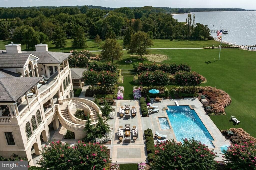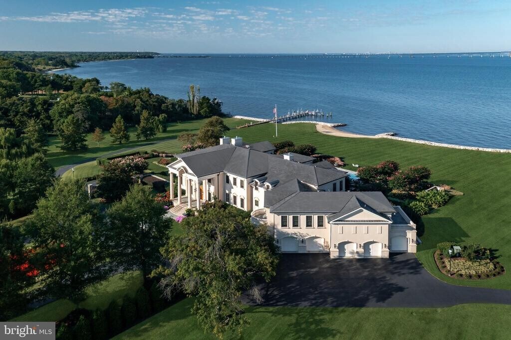 Commanding 18.67 private acres with sweeping views of the Chesapeake Bay and its iconic Chesapeake Bay Bridge, 200 Bridgeview Lane is now offered as an extraordinary lease opportunity—an estate of rare scale, privacy, and refinement. Adding to its distinction, this esteemed property was recently featured by a prestigious Hollywood studio as the backdrop for filming an award-winning television series—an honor that speaks to its cinematic presence, timeless design, and breathtaking natural setting. From its expansive grounds to its commanding water views, every element reflects a level of sophistication and exclusivity seldom available in a lease offering of this caliber. Approached through a gated drive that unfolds past manicured lawns and sculpted gardens, the property immediately establishes a sense of privacy and prestige. Every detail, from the hand-forged ironwork to the precision of its stone craftsmanship, reflects a commitment to excellence that is timeless and enduring. Inside, a dramatic double-height foyer reveals hand-milled trim, wrought-iron accents, and mahogany floors inlaid with imported stone. Expanses of glass capture 180-degree views of the Bay, drawing natural light into every corner and framing the horizon as a living work of art. Formal and informal living spaces flow effortlessly, united by coffered ceilings, bespoke millwork, and a sense of balance between grandeur and comfort. The gourmet kitchen is an entertainer’s masterpiece, anchored by custom cabinetry, professional-grade appliances, and a central island designed for gathering. It opens seamlessly to the grand parlor and a series of multi-tiered terraces overlooking the Bay, surrounding a heated pool and spa. Beyond, an outdoor pavilion with a summer kitchen, bar, and cascading fountains sets the stage for unforgettable entertaining beneath open skies. Occupying nearly 2,500 square feet, the primary suite serves as a sanctuary of peace and indulgence. It features a fireplace, sitting area, private office, and a terrace that captures sweeping water views. A spa-inspired bath with heated floors, dual vanities, soaking tub, and a marble shower complements a custom dressing room designed with meticulous detail. Each guest suite throughout the home is equally refined, offering its own private bath and distinctive character, ensuring every visitor experiences the same sense of thoughtful luxury. Located just moments from Washington, D.C. and Baltimore, yet feeling worlds away, 200 Bridgeview Lane stands as a rare lease offering of seclusion, scale, and sophistication, where architectural artistry meets the infinite beauty of the Bay.