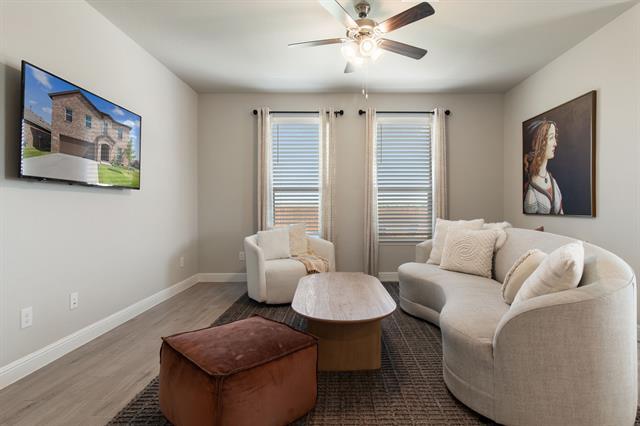 FULLY FURNISHED with Lawn Service included!! 5 Bedroom 4 Full Bath Home just 2 years old! This home has over 2800 sqft with an open floorplan. The kitchen has granite countertops with stainless steel appliances and gas range. The main floor boasts a generously sized primary bedroom with ensuite and an additional bedroom on the main floor with full bath! Upstairs is 3 more bedrooms and 2 more full bathrooms. There is an enormous game room that can accommodate several different living, working, or play spaces. The home is on a corner lot. The backyard is fully fenced with a fantastic view. There is an extended patio for morning coffee while watching the amazing sunrise or evenings relaxing in the shade. The home includes full use of HOA facilities. Northwest ISD.