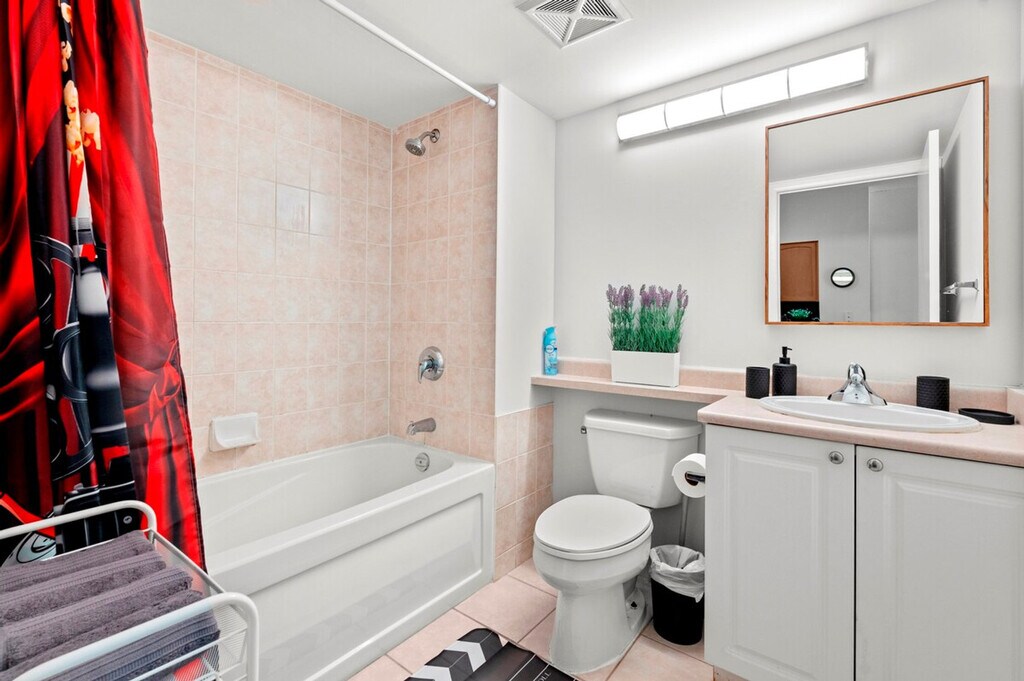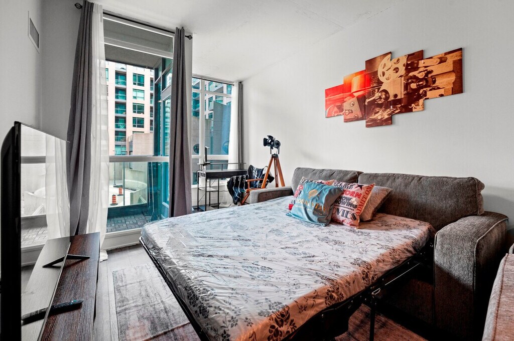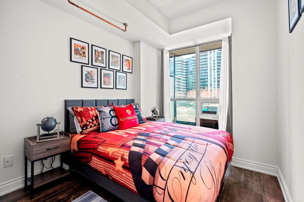 Feel right at home in this comfortable suite that has everything you need. Steps away from Toronto's Harbourfront, this apartment is near the TTC street car, Loblaws, Shoppers Drug Mart, LCBO, Starbucks, Tim Hortons, cafes, banks, parks, library, and schools. The unit features a fully equipped kitchen with a dishwasher, a dining area, a flat-screen TV with streaming services, and a private bathroom with towels, shampoo, conditioner, body wash, hair dryer, and other toiletries. Paid underground parking with in/out privileges is available upon request for $20 per night ($10 CAD if you book 15 nights or more). Please request parking spots in advance. Pets are allowed for a fee of $20 per pet per night. Travel cribs (for 0-18-month-old babies) and bed rails are available for $10 per item per night. Please book them in advance. Minutes away from Coronation Park, the multi-use Martin Goodman walking, running, and cycling trail, dog park, Billy Bishop Airport, BMO Field, CNE, and the city's finest entertainment lounges, restaurants, and theaters on King Street West. Walk to the CN Tower, Rogers Centre, Ripley's Aquarium, Scotiabank Arena, and Union Station. All guests must provide information, including names, ID details, and vehicle and license plate numbers (if parking is required). Guests must send a selfie with their ID as an anti-fraud measure. Guests whose names or ID do not match the information given are not allowed into the building. You need to be 25 or over in order to check in. For reservations with 7 nights or more it is possible to check-in from the age of 18. Registration Number: STR-2510-GKVVPT [SI]