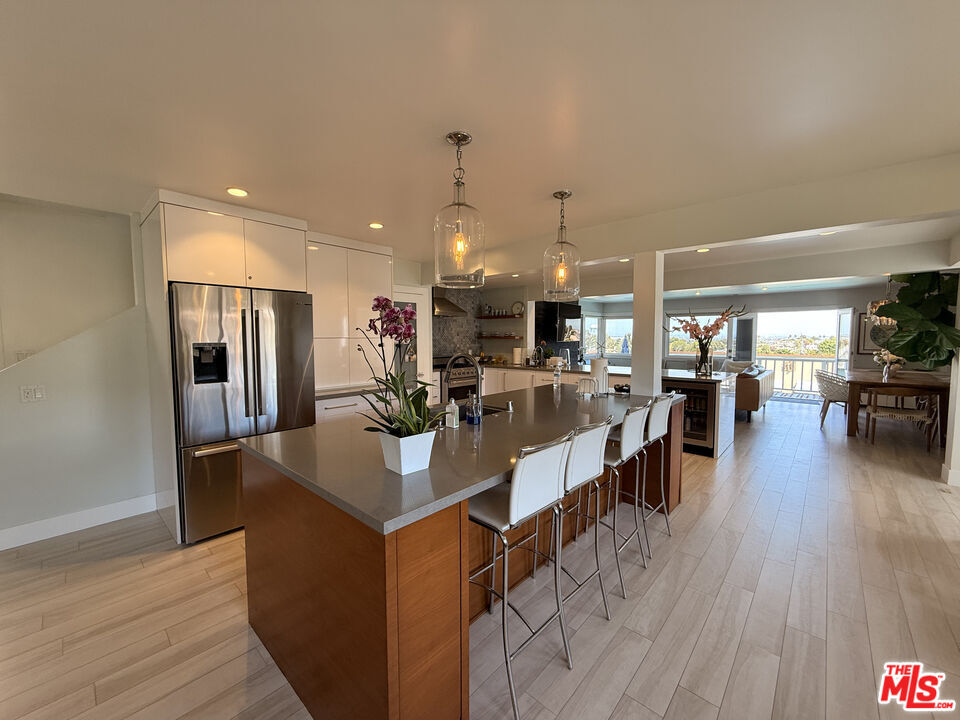 Ideal rental in prestigious MB Hill section. Great opportunity near downtown MB, Gelsons, Larsson Park, and easy access south into Hermosa Beach. This four bedroom remodeled home has a spacious open floor plan, with a large great room and full size dining room. It is available partially furnished. The gourmet kitchen has a two large islands, wine fridge, Viking stove and a breakfast area, as this wide open space is the hub of the house. There are two bedrooms and one bath upstairs and two bedrooms down, one with a private bath and a separate powder room. Italian porcelain tiles throughout. Steam shower in the primary bath. Walk in laundry room on main level. Perched up to command views over the pool and to downtown LA, the home gets great light with 180 degrees of sun, as it faces both East and West. Looking to start June 7th approximately. MLS ID 26813785