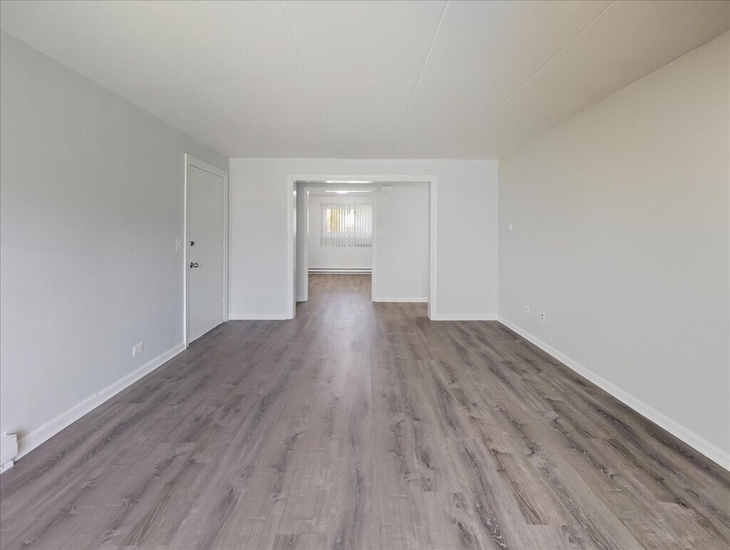 This bright and airy 2-bedroom, 1-bathroom apartment features stylish laminate flooring throughout and an open-concept kitchen equipped with a stove and refrigerator. The queen-sized bedroom offers ample space and comfort. Additional perks include free parking (one designated spot). Tenants are responsible for electric and water (electric stove and electric heat). The landlord covers trash removal. Don't miss out on this conveniently located and budget-friendly home!
