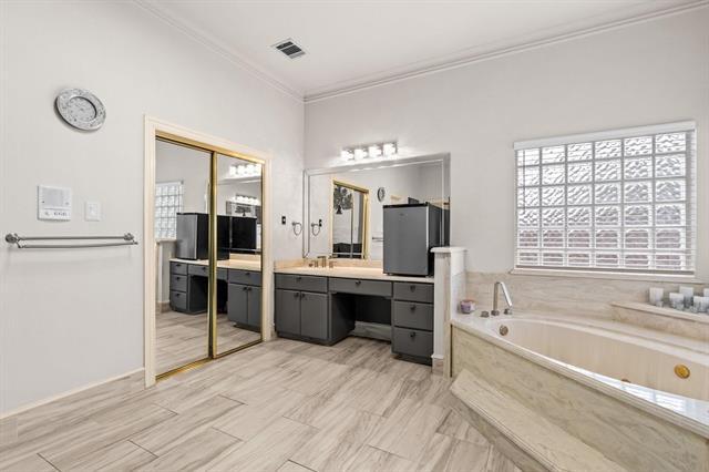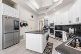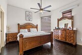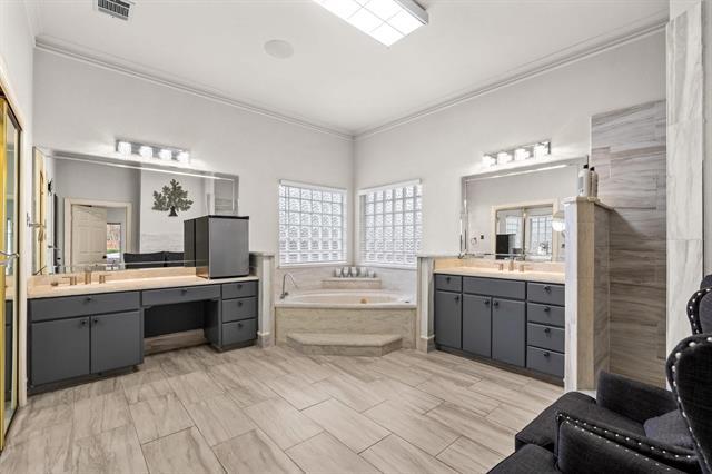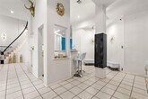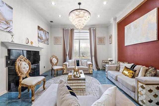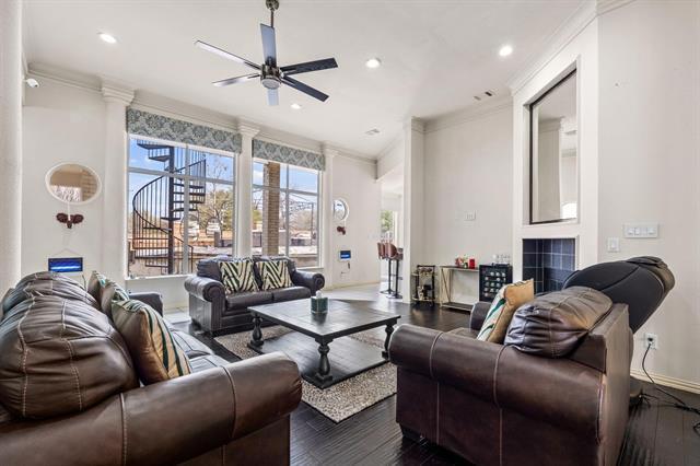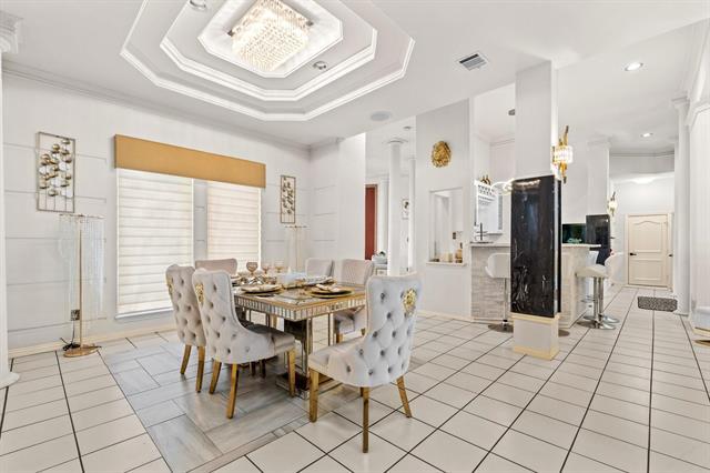 Step into luxury with this one-of-a-kind residence, featuring a stunning architectural design. From the moment you enter, you’re greeted by soaring ceilings and an expansive, open-concept floor plan that sets the stage for both grand entertaining and comfortable everyday living. The backyard oasis is a private sanctuary, enclosed by a solid brick 10-foot privacy fence. Enjoy resort-style amenities including a sparkling pool, multiple bistro-style seating areas, and a dramatic spiral staircase leading to an upper-level patio—perfect for relaxing under the stars or hosting unforgettable gatherings.Inside, the home offers five spacious bedrooms, including two on the main level—one being the luxurious primary suite retreat. Upstairs, three oversized bedrooms await, two of which boast soaring 30-foot ceilings bathed in natural light. A generous second-floor game room provides the ideal space for a custom home theater, fitness studio, or entertainment lounge. This home is equipped with cutting-edge features, including solar panels for energy efficiency and smart blinds throughout for effortless luxury. Whether you’re entertaining guests or enjoying a quiet night in, this extraordinary home combines timeless elegance with modern innovation.