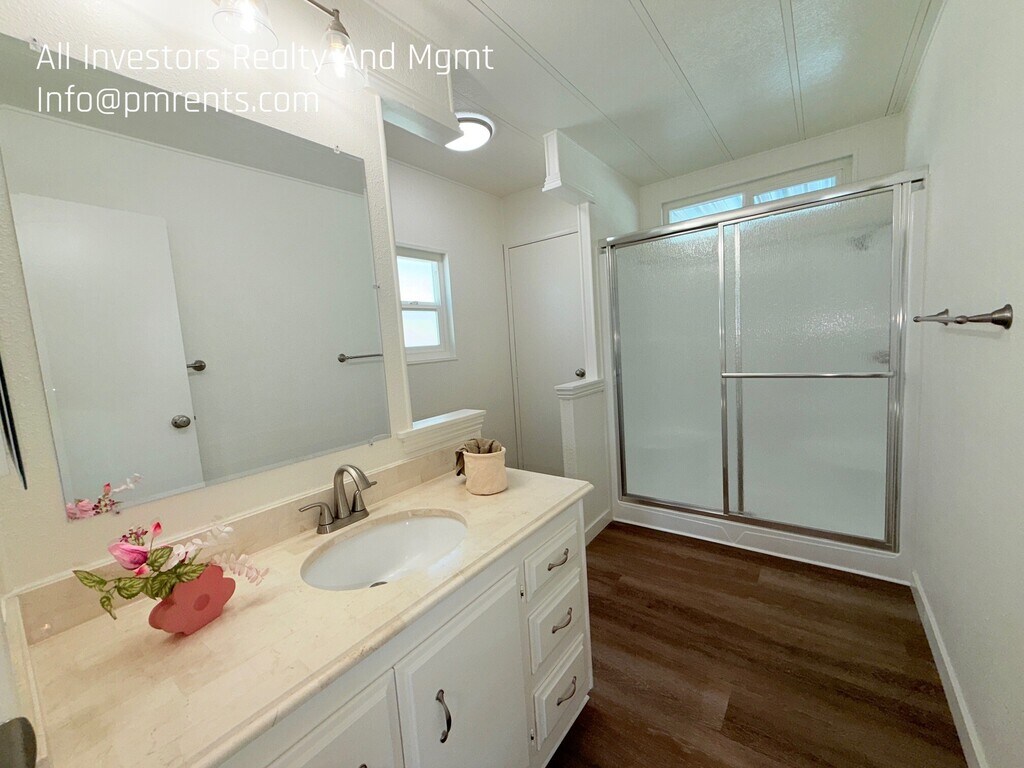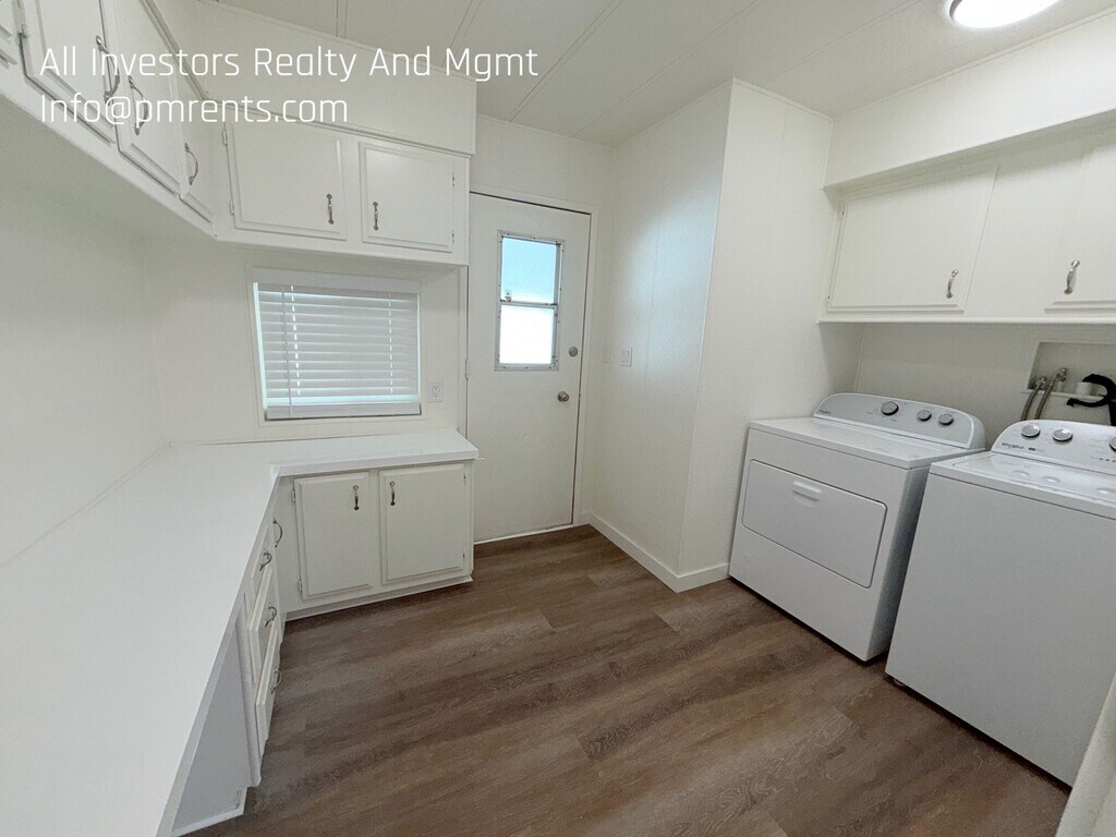 SENIORS 55+ ONLY (NO CHILDREN PERMITTED TO RESIDE). This is a beautiful two bedroom home. This home is nearly 1,300 square feet and is light and bright. Take advantage of the large front patio to take in the cool Oceanside weather. This is a wonderfully open and flowing floor plan with gorgeous luxury vinyl plank flooring, upgraded appliances and an abundance of cabinet and counter space. The natural light pours in from the numerous windows this home features. Both bedrooms are spacious. The laundry room includes a washer and dryer for your convenience. This home has AC to keep you comfortable in the summer. The driveway can easily accomodate two vehicles. One small pet may be permitted. Non smokers only. Tenant pay gas/electric/water/trash. Located in the highly desirable Rancho San Luis Rey Mobile Home Park. Enjoy a quiet park with community pool, spa, tennis, shuffle board, possible RV parking, clubhouse and get togethers! Contact All Investors Realty today for your opportunity to tour this home. Equal Housing Opportunity. CABRE #02148089. SENIORS 55+ ONLY
