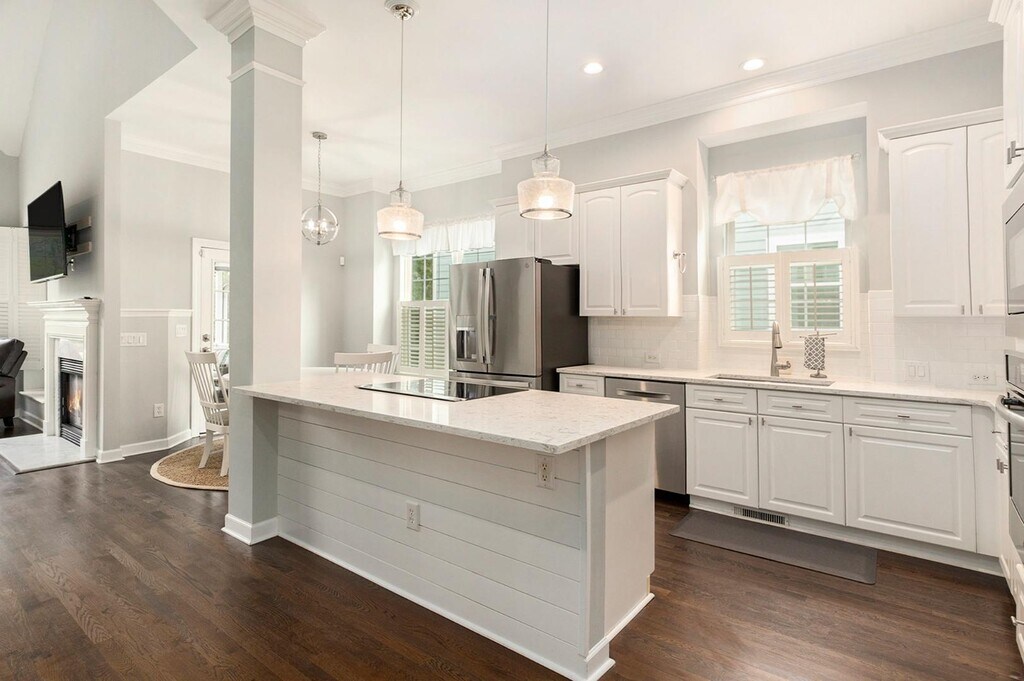 Available 6/1, furnished or unfurnished, this elevated 4 bed/3.5 bath home sits on a quiet cul-de-sac on Daniel Island with marsh views from the spacious front porch. Inside features hardwood floors, an open layout, formal dining room, and a dedicated office with French doors. The living room offers vaulted ceilings and a gas fireplace, while the updated kitchen includes quartz countertops, stainless appliances, and opens to a breakfast area with access to a screened porch and large Trex deck. The primary suite is on the first floor with nearby laundry, and upstairs includes three additional bedrooms, one with a private ensuite, plus a versatile loft space. Enjoy a fenced yard with landscaping included and an oversized garage with over 2,000 sq ft of storage. Convenient to parks, schools, trails, and dining.