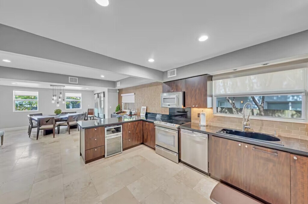 Feel at home in this completely renovated, custom-decorated 2-story Spanish-style gem, located in the safest neighborhood. This luxury vacation home is beautifully accommodated and perfect for multiple families. It features 3 well-equipped bedrooms plus a large comfy sofa with lots of extra blankets and pillows. An air mattress is available upon request. Enjoy the sunshine state and lunch or dine out in the yard picnic area. Enjoy the convenience of 2 parking spaces in the driveway and lots of free street parking. Walk to the famous Las Olas Blvd, offering the best restaurants, shopping, nightlife, parks, and canals. It's only a 5-minute drive from the prettiest beaches in Florida. Quiet hours are from 10 pm to 8 am, per Fort Lauderdale city ordinance. No unauthorized guests are permitted after 12 am. Smoking is prohibited inside the house and will result in a $1000 fine. [SI]