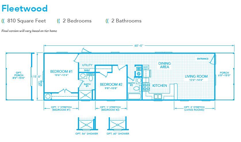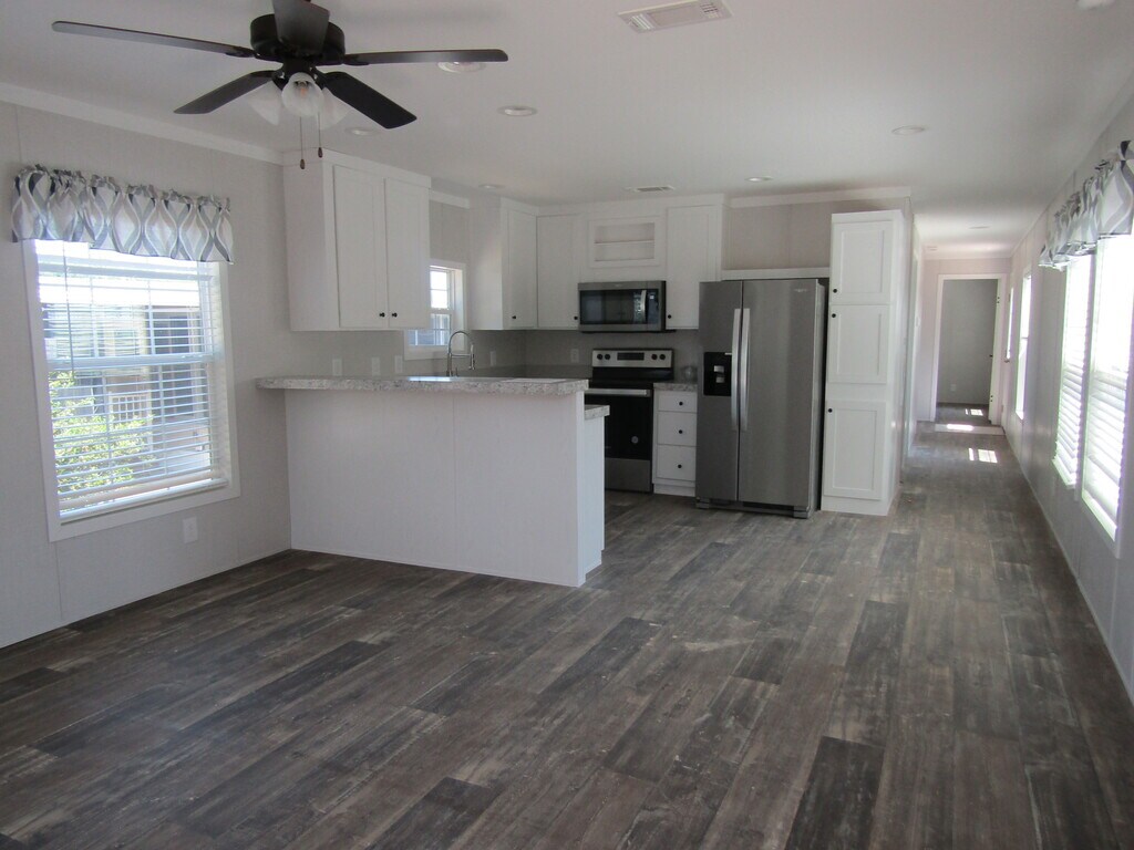 Spacious 2 bedroom 2 bath 810 Sq. Ft. Home with Large Front Porch. Open concept with Large U-Shaped Kitchen. Stainless Steel Appliances, Dishwasher, Double Door Fridge. Laundry Hook ups. Large Parking Area. Must See.