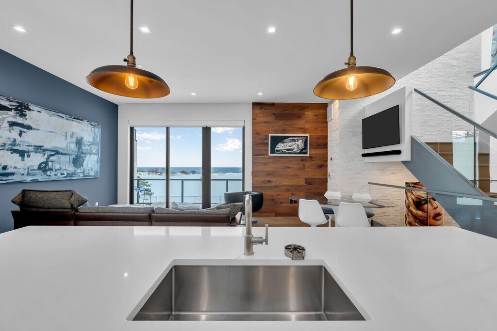 A rare opportunity to experience uncompromising oceanfront living. This five-bedroom, five-bath multi-level residence captures panoramic, unobstructed Atlantic views from nearly every room, with walls of glass that fill the home with natural light. The open-concept living and dining areas are anchored by a designer chef's kitchen featuring premium appliances, bespoke cabinetry, and quartz countertops, while a custom-built full bar enhances the home's entertaining appeal. Expansive terraces and a private rooftop deck create seamless indoor-outdoor living, complete with an outdoor kitchen and ice maker -- the perfect setting for hosting above the shoreline. A private elevator, spa-inspired primary suite, in-unit laundry, generous storage, and an attached garage complete this elevated coastal retreat.