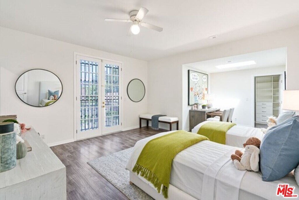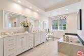 This French Provincial corner lot home offers a contemporary touch on a grand scale. Situated on a residential, tree-lined street in Beverly Hills, the foyer welcomes you with high ceilings, Restoration Hardware light fixtures, and massive windows optimizing natural light throughout the home. The open floor plan is perfect for entertaining and features a formal living room with a marble framed fireplace and French doors connecting to the front yard, a formal dining room with adjacent wet-bar, family room, separate eating nook off the kitchen, and enclosed office/sun room with windows leading to the backyard. Downstairs also features a dramatic half bath off of the foyer, and a bedroom with ensuite bathroom. Upstairs features 3 bedrooms, each with their own bathroom and balcony. The primary suite is equipped with dual walk-in closets, double vanity, tub and separate shower, as well as a water closet. This home has been fully updated with central AC and heat, separated into two zones for each floor, recessed lighting, freshly painted, plantation shutters throughout, and a downstairs basement with a wine cellar, washer/dryer and second refrigerator. 2 car garage with room to park additional cars on side. MLS# 25626141