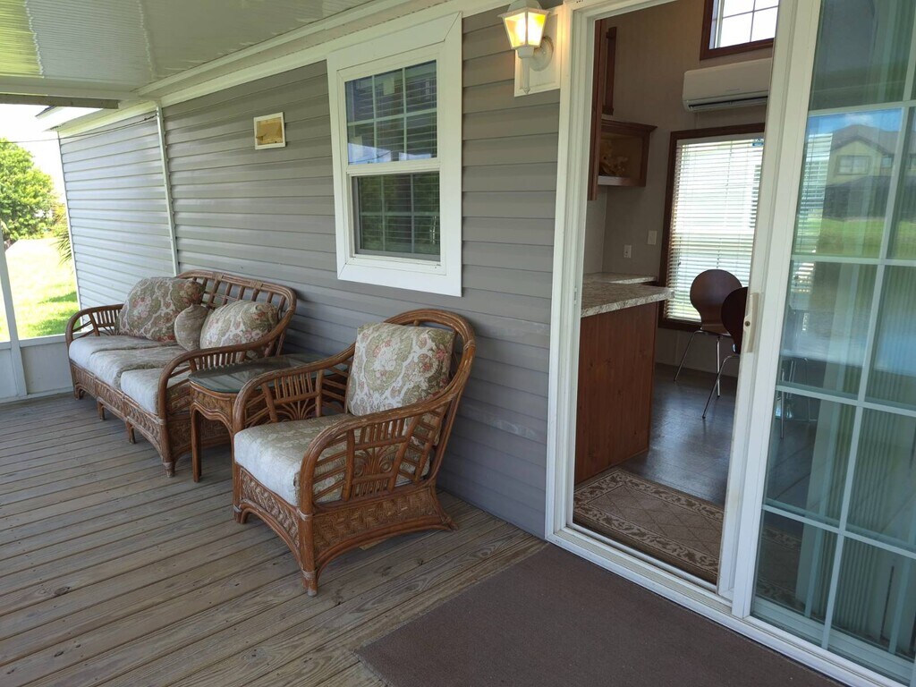-1 bedroom/1 bathroom park model home -Black appliances: fridge, microwave, gas stove (propane) -The screened porch is ideal for morning coffee and bird watching! -Does not include furnishings or utilities -Must pass background checks for residency approval, $35 application fee per applicant -Available now for $1,800/month, one-year lease, $1,800 security deposit. -Sorry, no pets -Lots of amenities! Clubhouse, private beach, recreation area with gazebo, fire pit, BBQ, fishing pier with boat slips, Riverwalk path, Friday Happy Hour, games, Potluck dinners, Walking Club, Kayak Club, and beautiful sunrises and sunsets!