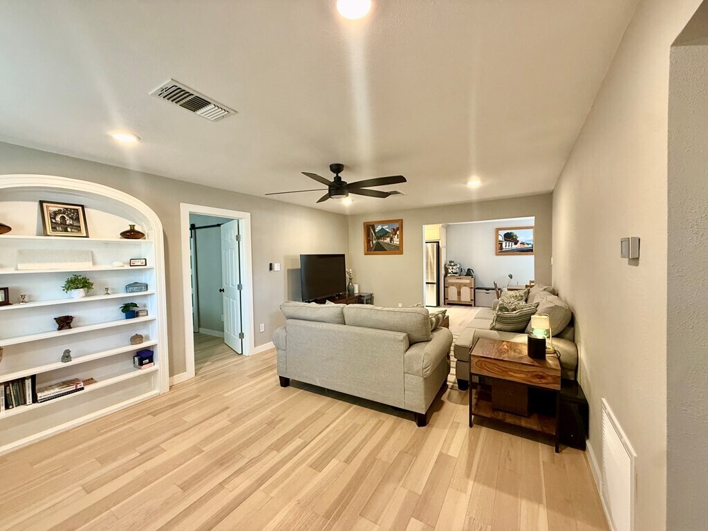 A must see. Beautiful fully remodeled FULLY FURNISHED home featuring 3 bed 2 baths spread over 1438 sq ft. Large corner lot with tall covered parking. Pets allowed small size and limited to 1.