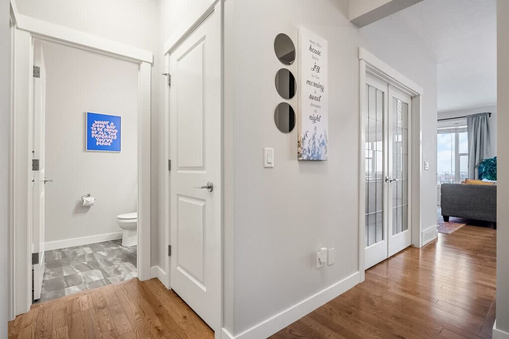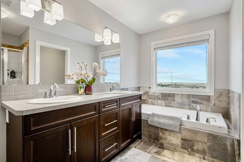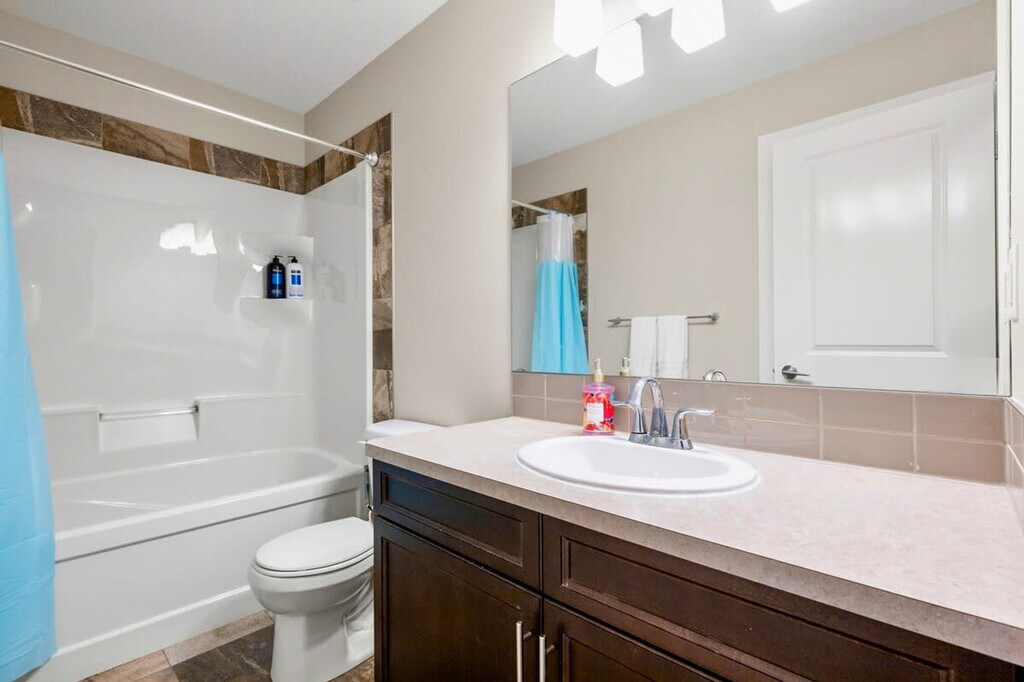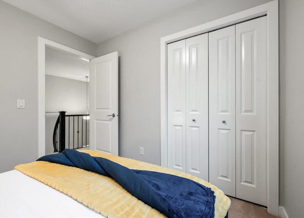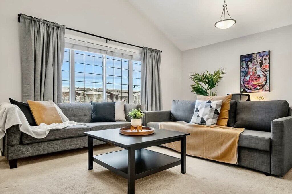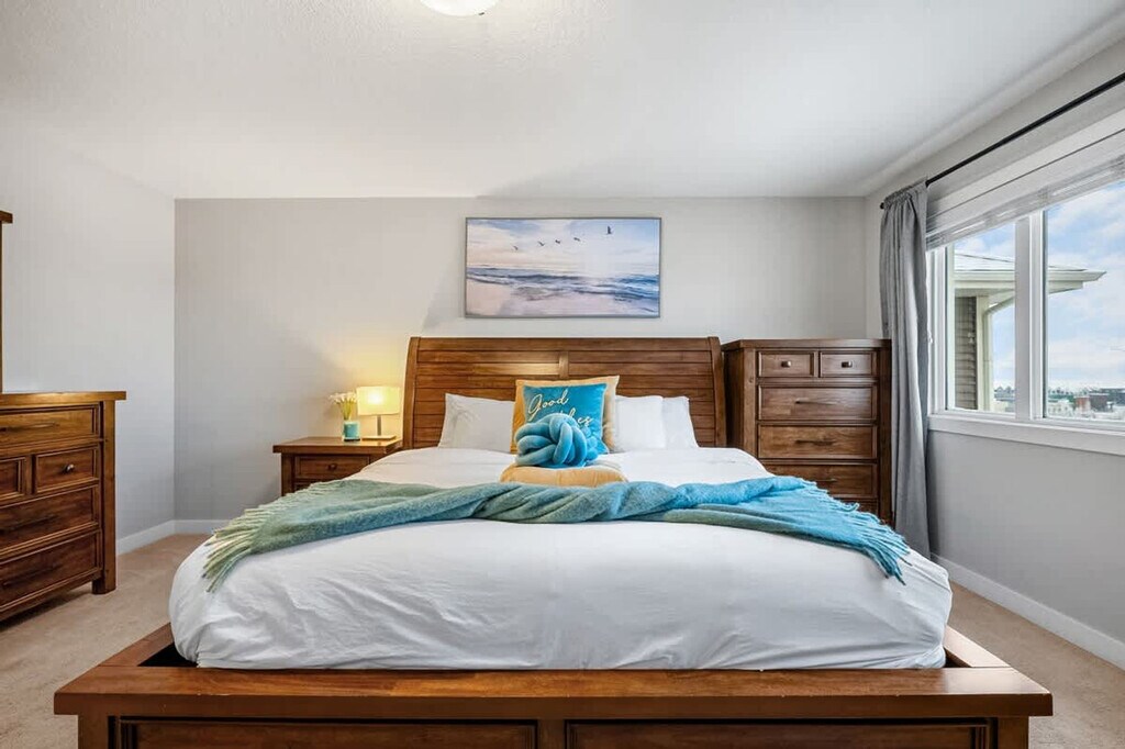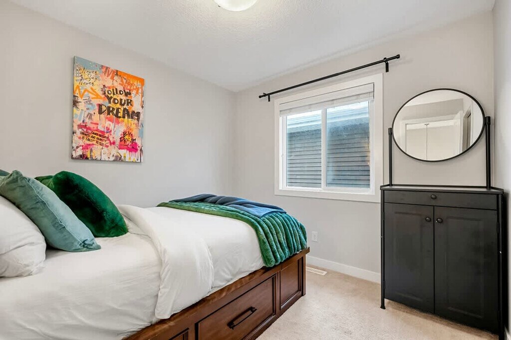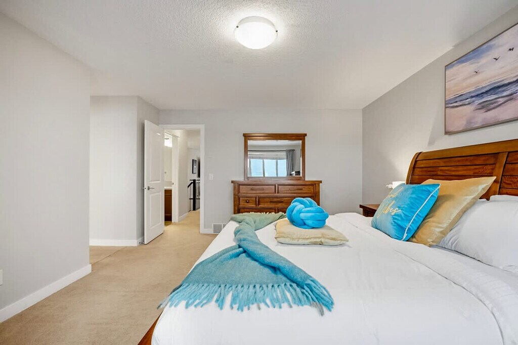 Welcome to The Mask, a spacious 5-bedroom home in NW Calgary. This inviting residence features a king-size bed, double bed, queen bed, bunk bed, and sofa bed, ensuring ample space for everyone. Enjoy two cozy living rooms and family-friendly amenities like kids' dishes, a high chair, and a pack-and-play. The master bedroom and movie room are equipped with room-darkening blinds for ultimate comfort. Relax on the balcony with views of Calgary and park hassle-free in the private driveway, making it perfect for families and groups. The home boasts two full bathrooms with bathtubs and a half bathroom, a fully equipped kitchen with a microwave, stove, oven, and coffee machine, and a dining table that seats six. Entertainment is at your fingertips with an 85" smart TV and a 65" smart TV. Additionally, the property includes a washer and dryer for your convenience. Please note, there is no AC, and the house can get hot in the summer. The property offers private free parking for your convenience. Pets are allowed with a pet fee charged per pet, plus any additional cleaning needed. Conveniently located, you're just a 5-minute drive from restaurants and Costco, a 20-minute drive from downtown Calgary and YYC Airport, and a 15-minute drive from WinSport/COP. For those looking to explore further, Banff is only an hour's drive away. The home is lived in part-time, so there are locked closets and personal touches. A basement tenant has a separate entrance, and there is a locked door on both sides, ensuring privacy. The bunk bed is recommended only for small kids as the mattress is not thick or supportive, and the ladder can be tricky. Smoking is permitted outside, away from windows, but not indoors or near windows, with a $1000 fee for violations. Parties or excessive noise are not allowed, with a $1000 fee for misbehavior. Please remove shoes at the entrance, and note that no overnight guests are allowed without prior approval. Early check-in or late check-out is available for an additional fee, and sticking to the check-out time is essential to avoid extra charges. The use of glitter for celebrations or craft projects is prohibited. The home is equipped with fast Wi-Fi and a dedicated workspace, making it remote work-friendly. Registration Number: BL287725 [SI]