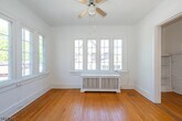 Gorgeous, well maintained 4 bedroom apartment in an Owner occupied home. Huge living room with working wood burning fireplace. Create your own library in elegant built-ins on both sides of the fireplace. Large formal dining room gets lots of light from the sunlit sunroom where you can set your home office. Eat-in kitchen has access to the basement with laundry facility. Three large bedrooms and a full bathroom complete second floor. The top floor offers a large bedroom, great family room, full bath, second office and great closet/storage space. Beautiful wood floors throughout. Great size bedrooms. Apartment comes with assigned parking for one car and use of backyard. NO smoking/vaping in or around the premises.