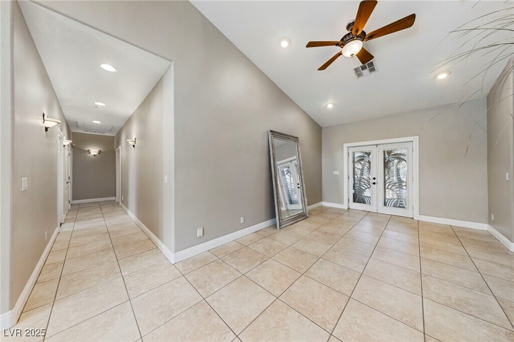 Luxurious Fully-Funished Single Family Home with Pool and Spa! Welcome to this stunning residence in Henderson Nevada. Unlike most homes in the valley, this single story home features a full basement with 9 foot ceilings, a game room, a movie room, 3 bedrooms, 2.5 bathrooms and secret panic room with rock climbing wall and foam pit! On the main floor you will find well appointed upgrades such as granite counters, tile flooring, stickwood accents, primary bedroom plus additional bedroom and a den. Large chef's kitchen with pot-filler above stove, expansive island with seating for 6, and much more. The backyard is an oasis with pool/spa/waterfall, putting green, and a deatched 2 car garage (to go along with the 3 car attached garage!).