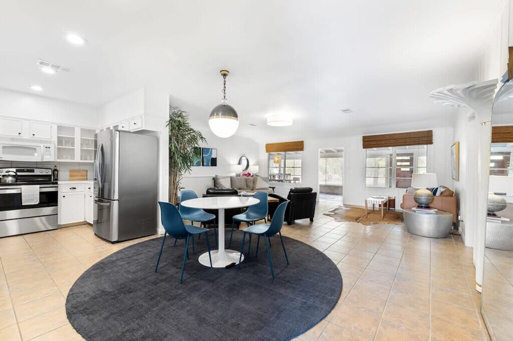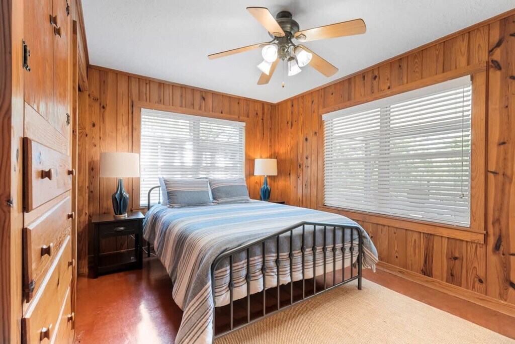 Feel at home in this serene 3-bedroom, 2-bathroom retreat nestled in nature, perfect for up to 6 guests. The master bedroom features a plush king-size bed, while the other two bedrooms offer comfortable queen-size beds. Two modern bathrooms feature clean and contemporary designs, along with all the essential amenities. Enjoy the backyard oasis above Cypress Creek, with a stunning view of the spring-fed creek and water lilies. The cowboy pool can be heated for cooler months, and a cozy firepit is available for chilly evenings under the Hill Country sky. This Wimberley location is less than 10 minutes from H-E-B Grocery, Wimberley town square with its shops and restaurants, recreational tennis courts, Quicksand Golf Course, Cypress Falls, Jacobs Well, and Blue Hole Regional Park. Pets, smoking, fireworks, and parties or events are not allowed. Quiet hours are from 10 PM to 7 AM. The primary guest must be at least 21 years old and present for the entire reservation. Failure to return any keys used to the lockbox will result in a $50 replacement fee per key. For health, safety, and maintenance reasons, pets are strictly prohibited from entering the pool. A $500 fine will be charged if this rule is violated. [SI]