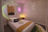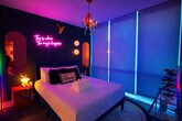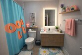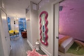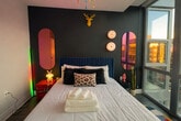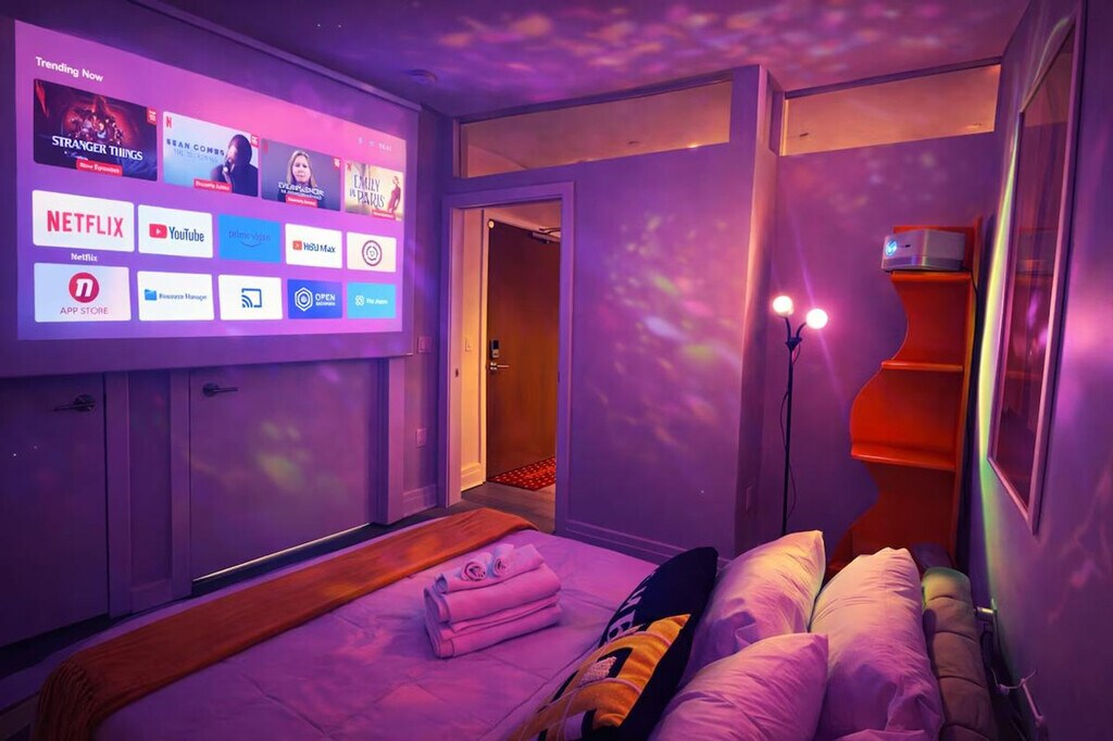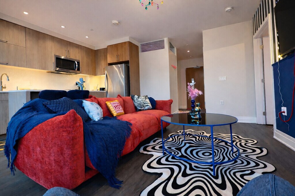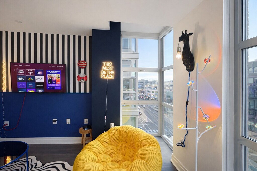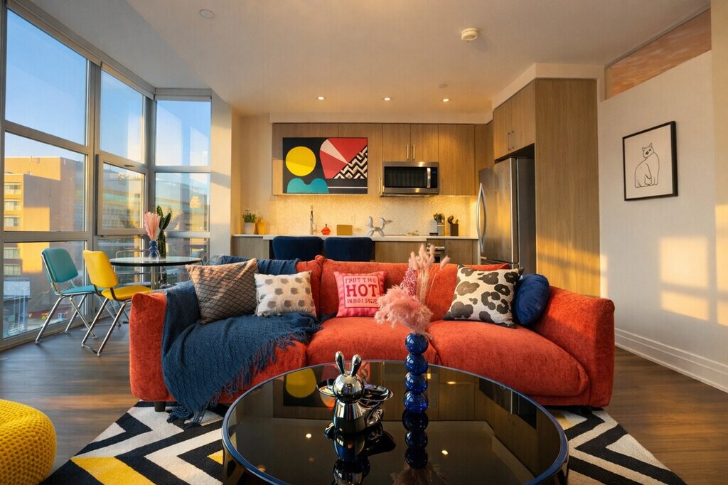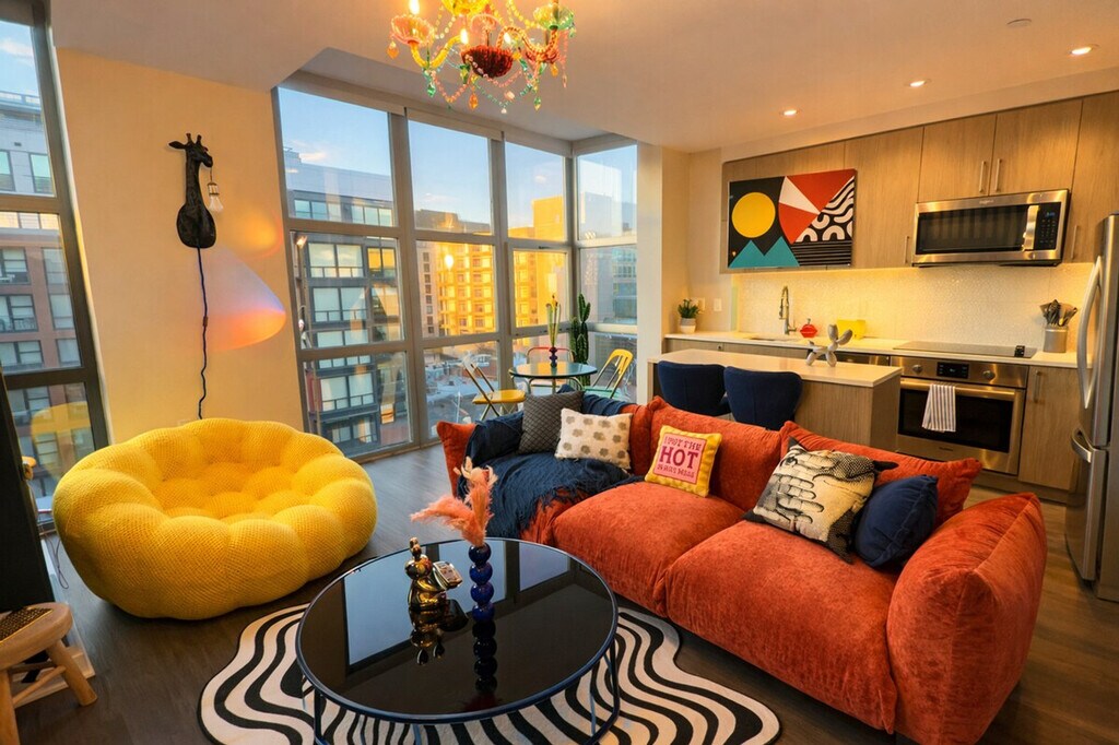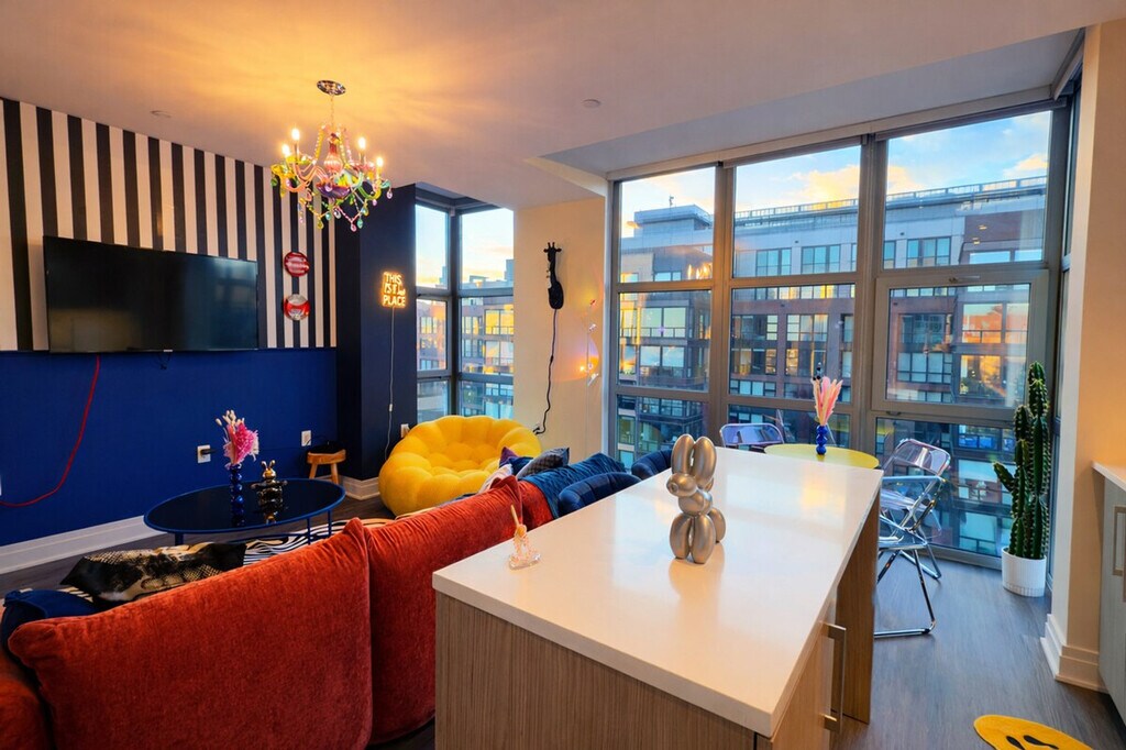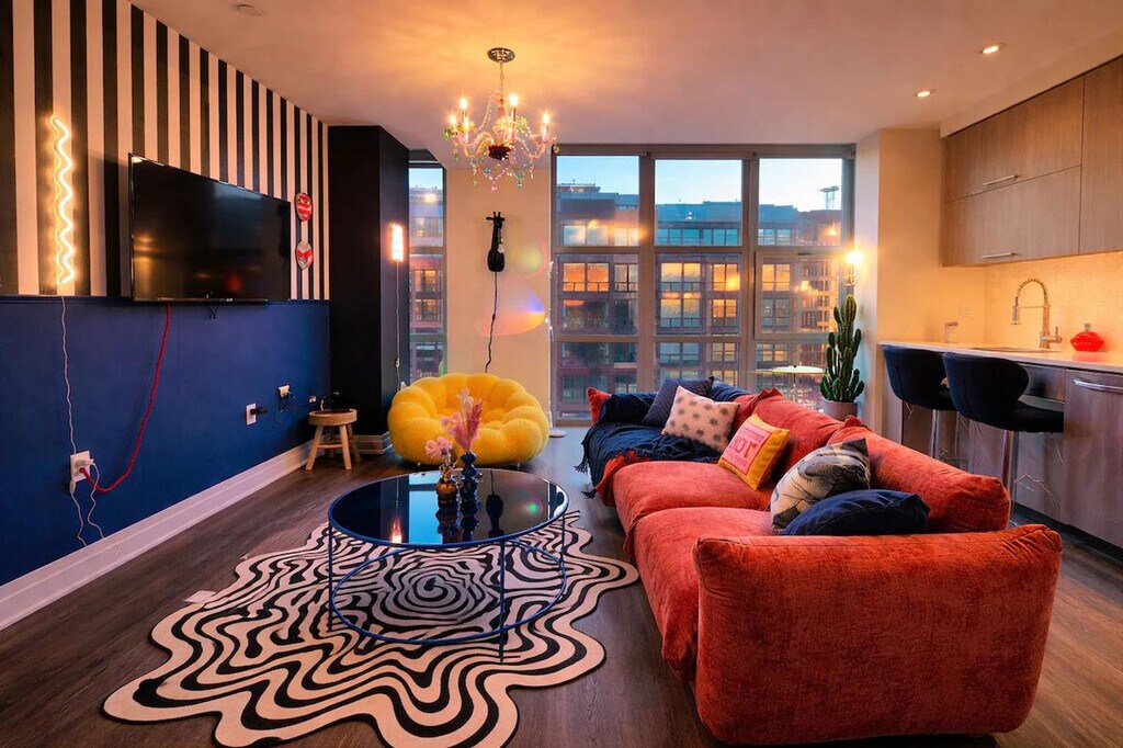 Feel at home in this bold and playful apartment designed to make you smile the second you walk in. The space feels bright, crisp, and energizing by day, and cozy-cool by night. It’s easy to live in, easy to enjoy, and impossible to forget. Expect bold colors, graphic shapes, and Memphis-style energy mixed with unexpected pops and glossy finishes. Every piece is intentional. Pets are welcome for an additional fee. Contact the host in advance to find out the associated rates. Parking is available for an additional fee. An ID and identity verification via biometrics are required. You will receive a link with instructions before your check-in date with all the information you need. [SI]