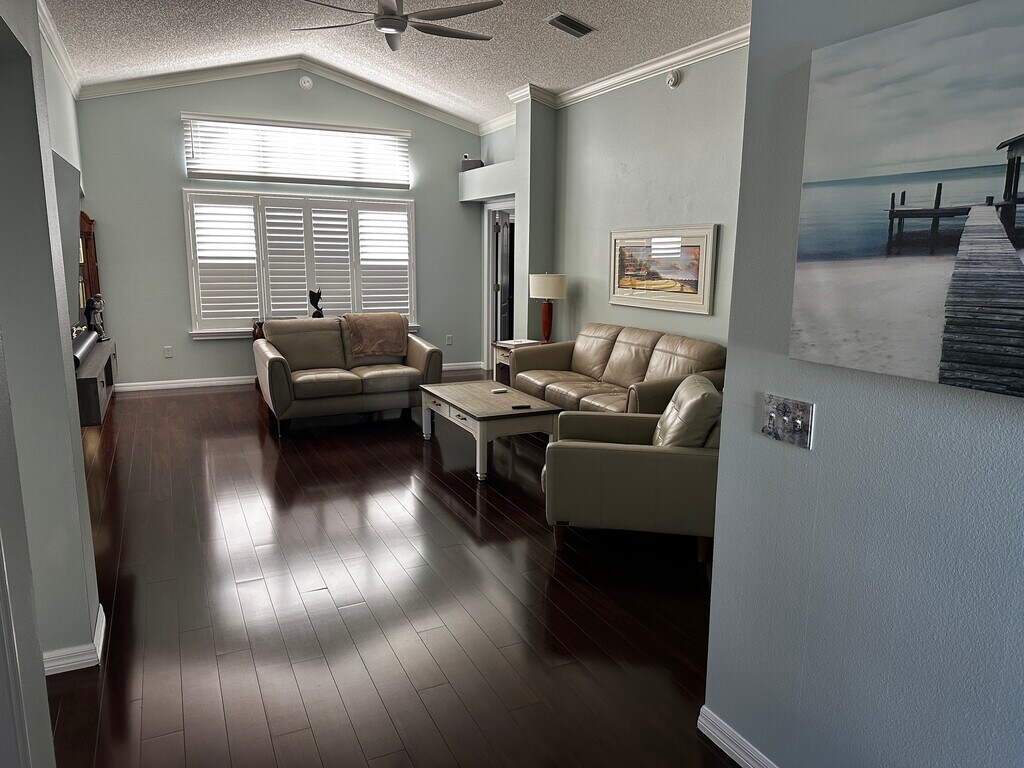 This home is beautifully updated and fully furnished—a must-see. Rent includes an indoor gym, Yamaha golf cart, an air-conditioned garage, an air-conditioned lanai, and more...