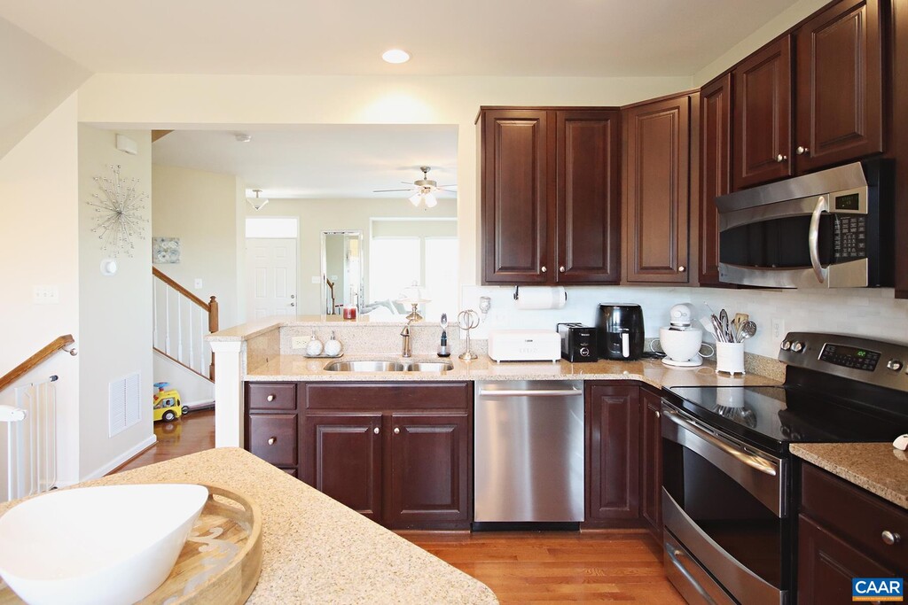 Sign a lease and move in by December 1st to receive your first month rent-free! This small pet-friendly 3 bedroom, 2 full/2 half bath end-unit townhome is nestled within the Pavilions at Pantops community and offers easy access to shopping, dining, and major roads like the 250 bypass and I-64. Just a short drive from the University of Virginia and downtown Charlottesville. Outdoor enthusiasts will appreciate the proximity to the Rivanna River and the community's amenities, including playgrounds, a basketball court, stocked ponds, and walkable sidewalks. This 1,800 sqft townhome offers a light-filled interior and hardwood floors on the main level. You'll love the modern kitchen, which boasts granite countertops, stainless steel appliances, and a center island. The top floor includes a vaulted-ceiling primary bedroom with a walk-in closet and private bath, along with two additional bedrooms and a full hall bath. Enjoy the flexible, finished walk-out basement with a family room, home office, half bath, and laundry area (washer/dryer included). Step out onto the rear deck to take in stunning sunset views. Parking is easy with two dedicated spaces directly in front of your door. Up to two small pets are allowed with additional fees.
