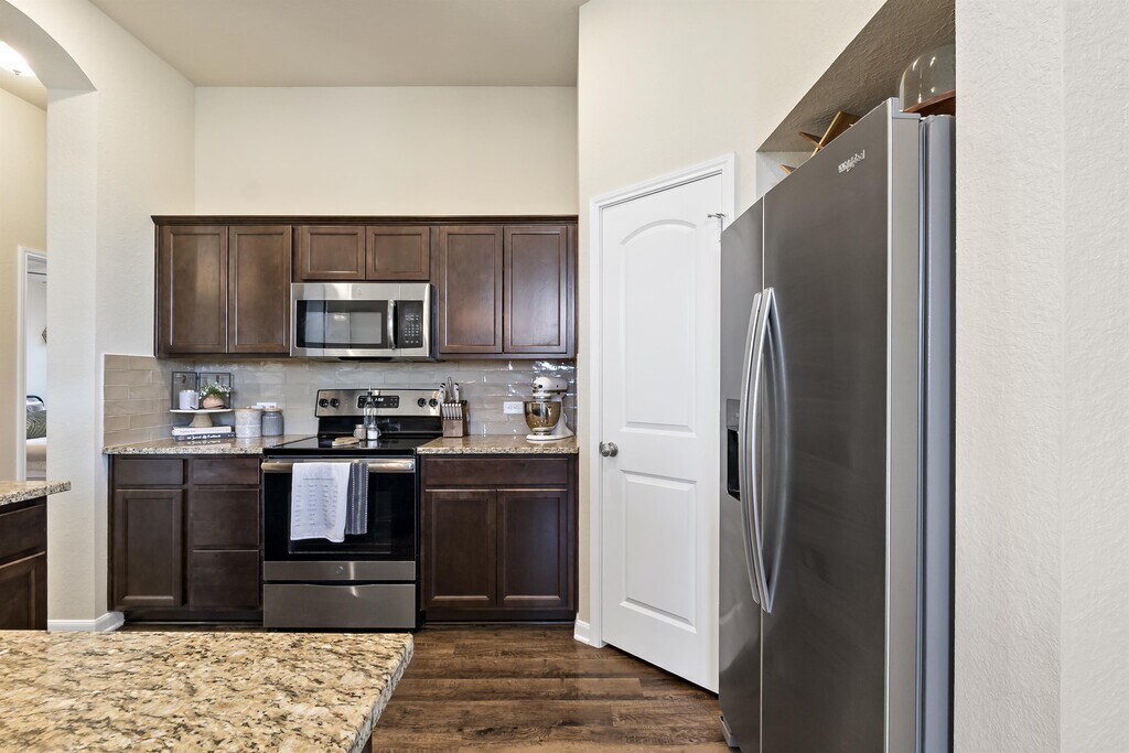 Pre-leasing for July 2026 move in! This 3 bedroom 2 bath home is located in the community of Edgewater on a corner lot. Inside there is lots of natural light with an open concept living space. The kitchen has granite countertops, stainless appliances, with pantry and bar top. The master suite has ample space, with soaking tub, shower, and double sink vanity, with large walk-in closet. Refrigerator, washer, and dryer will be provided as well as lawn care. Pet Policy: Case-by-case basis with owner approval. Include animal(s) on your application. $500 for one pet, adding additional would need approval and deposit increase of $250 per animal. Half of all pet-related deposits are non-refundable.