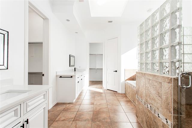Located just feet from the Hutton Branch trail, this property has incredible walking distance access to Josey Ranch Park Sports Complex and Lake, Carrollton Public Library, Jimmy Porter Park, and Maridoe Golf Club. The property has been well updated with gorgeous hardwood floors, custom kitchen cabinets, stainless appliances, and a gas fireplace to keep warm this winter! The renovated, open, gourmet-style kitchen has glass blocks, kitchen island, many cabinets, granite countertops and stainless appliances -- and it opens to great room & breakfast room. There are park views from the master bedroom, living area, kitchen and breakfast room, plus tile and marble floors in kitchen and bathrooms. The home's large primary suite has high ceilings, a sitting area, large walk-in shower, garden tub and large his & hers closets. Enjoy the outdoors on a large covered back porch, and a large private fenced yard. Tenant pays all utilities.
