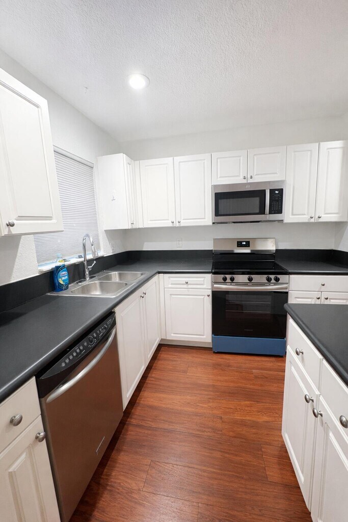 Available Now! Newer corner-unit 3BR/2.5BA loft townhome with 1-car garage and 2-car driveway,offering 1,887 SF of living space. Open first-floor layout with living,dining,and breakfast areas,remodeled kitchen with stainless steel appliances,laminate wood floors,volume ceilings,and first-floor laundry with full-size washer/dryer. Primary bedroom downstairs with custom walk-in closet and en-suite bath. Upstairs features a large loft,two bedrooms,and one full bath. No rear neighborsfaces a private preserve. Community pool. Pets allowed.No HOA approval is required. MLS ID R11149743