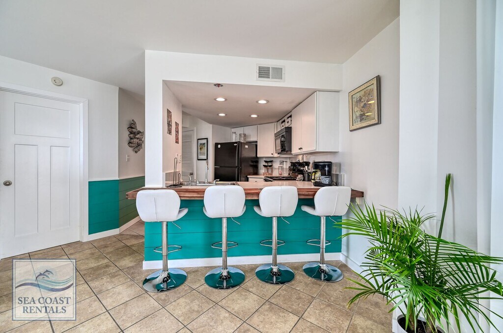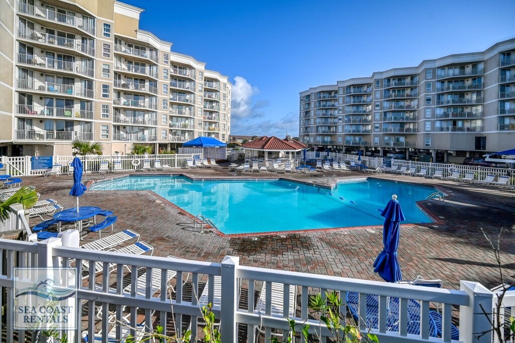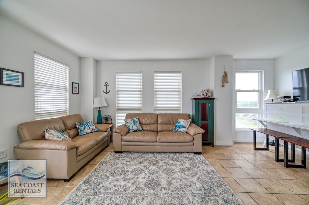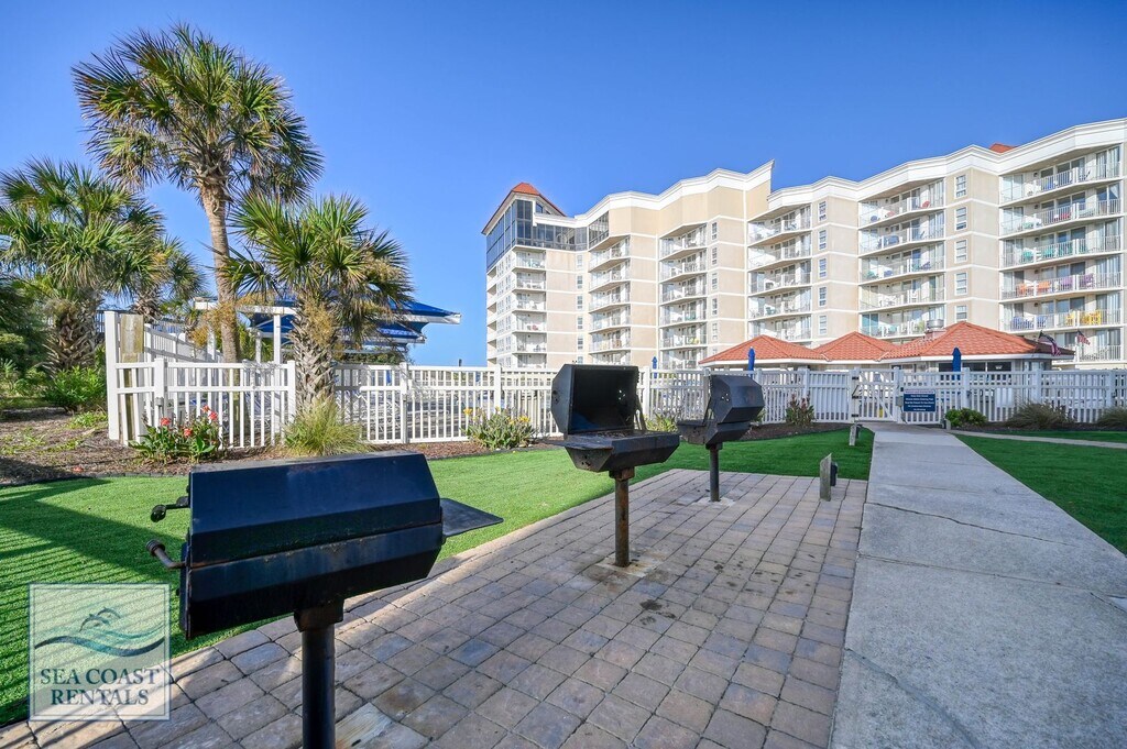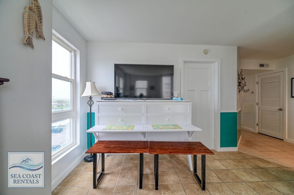 Welcome to St. Regis 3201. This cute condo with beautiful views of the beach, ocean, and beyond. It is a perfect spot for getting away from the cold winter and soaking up some sun. The St. Regis resort has everything you could need! The St. Regis is oceanfront, with a large outdoor pool, an arcade, and a workout room. There is a massage suite, sauna, playground, and outdoor sports area including bocce ball, pickleball, putt putt, and life-size checkers! The entire top floor of Building 2 is Ocean’s Edge, an amazing restaurant with panoramic views. Once you settle in you'll never want to leave. St. Regis 3201 is a 1-bedroom, 2-bathroom condo. The master bedroom has a queen-sized bed, TV, and ensuite bathroom with a step-in shower. There is a stacked washer and dryer, and a full bathroom with a bathtub and shower. The kitchen is perfect for fixing a quick meal or snack on the go. You’ll love the sunny living room with a sofa and loveseat, perfect for catching a cat nap. The cabinet that the TV sits on is a queen-sized Murphy bed. Sitting on the balcony just off the living room you’ll find the perfect place to read, doze, meditate, or do your "work at home" hours. If you are looking for a monthly stay at the beach, (or work from home for the winter) you can't beat these rates for a fully furnished/utilities-included condo near the beach, with all these amenities right on your doorstep. **Please contact Ann at Sea Coast Rentals for further information and/or to check available dates. Check out all our rentals: both furnished off-season and unfurnished long-term. **