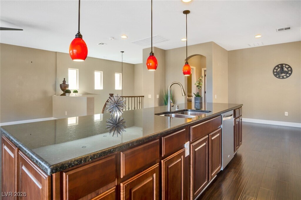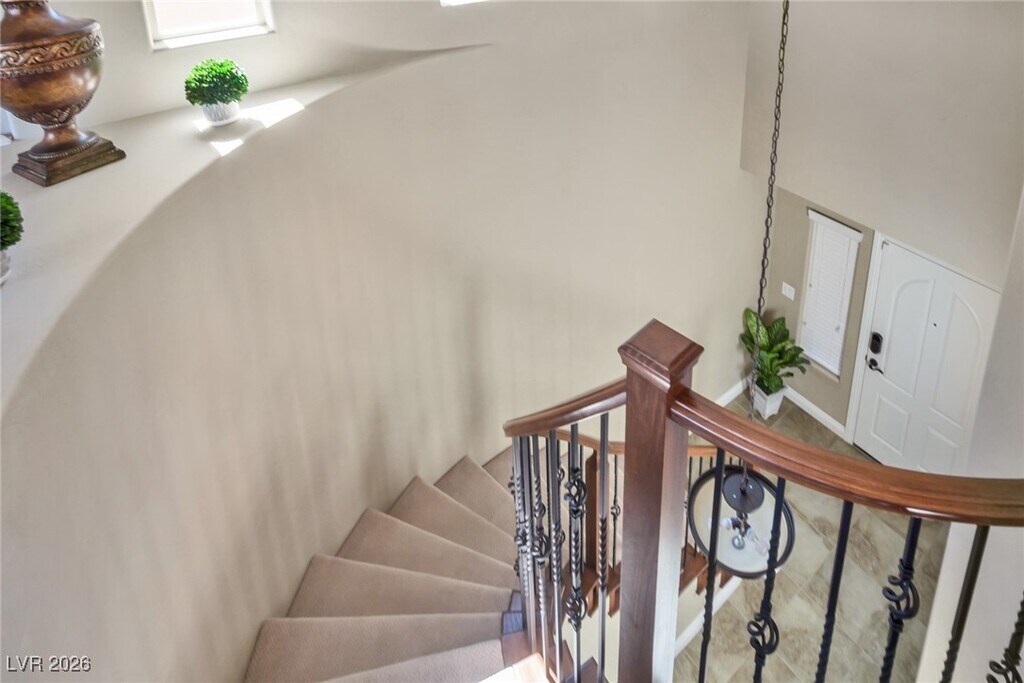 Amazing view of Red Rock Casino and Downtown Summerlin! Highly upgraded home: soundproof Andersen windows and all 3 patio doors, Solar panels, energy efficient(LEED Platinum Certified), granite counter tops, remote control outdoor shades, laminate and tile (carpet on the stairs only), master bedroom with Italian tile accent wall, spa style walk-in master shower, tankless water heater, water softener. 3rd room could be used as a bedroom (without closet), 2.5 baths! Electrical bill is very low even during the summer time.