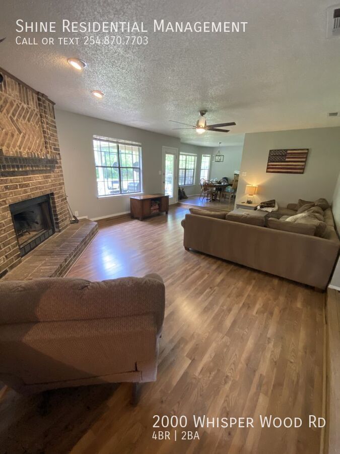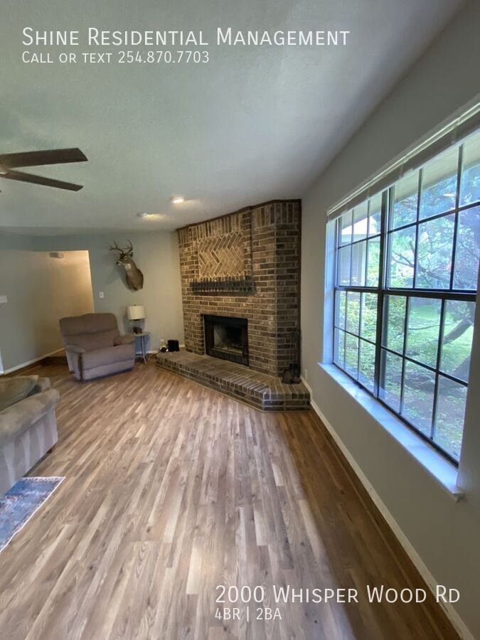 Welcome to 2000 Whisper Wood Rd, a charming residence nestled in the heart of Harker Heights, TX. This home boasts three spacious bedrooms and two full bathrooms, offering ample space for comfort and relaxation. The kitchen is a chef's dream, equipped with a stainless dishwasher, stainless refrigerator, stainless glass top stove/oven, and a stainless microwave vent hood. An added bonus is the kitchen island, perfect for meal prep or casual dining. The home also features a cozy fireplace, perfect for those chilly evenings. The garage parking ensures your vehicle is safe and protected. Storage is plentiful with a linen closet, pantry, and walk-in closets. The home is also fitted with ceiling fans, central air and heat, ensuring year-round comfort. The hardwood vinyl plank floors add a touch of elegance and are easy to maintain. The double vanity sinks in the bathroom add a touch of luxury. The home also comes with laundry hook up, garbage disposal, and window coverings for your convenience. The privacy fence offers a sense of seclusion, making your outdoor space a personal oasis. This home is a perfect blend of comfort and convenience. Come and experience the lifestyle that 2000 Whisper Wood Rd has to offer. Central Air And Heat Double Vanity Sinks Hardwood Vinyl Plank Floors Kitchen Island Laundry Hook Up Linen Closet Mirrors Privacy Fence Stainless Diswasher Stainless Glass Top Oven/Range Stainless Microwave Venthood Stainless Refrigerator Walk In Closets Window Coverings