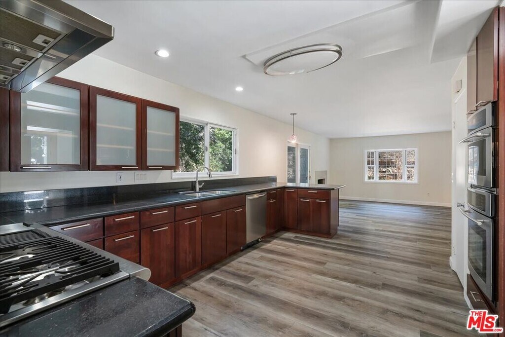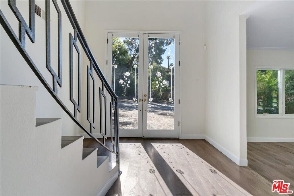 Privacy and space invite you to call this Woodlands Hills property home! Nestled on a private cul-de-sac st, this home is minutes from shopping, restaurants and more yet offers secluded peace and quiet. The gated driveway opens to the two-car garage and large home entrance. Walking inside showcases high ceilings in the entry and hardwood flooring throughout. The bottom floor has a large living room, dining room and den off the kitchen. The kitchen has been fully remodeled with stone counter tops, cabinetry and stainless steel refrigerator, dishwasher and gas stove/oven. The den also has a working fireplace and is the perfect area to watch a movie on a cozy night with friends and family. The backyard is ideal for entertaining as well and features a large pool and spa. Up stairs has four bedrooms and a bonus room that is perfect for a playroom or office. The primary bedroom has a balcony, walk-in closet and full bathroom with shower and double sinks. Come take a look at this property today! MLS# 25564085