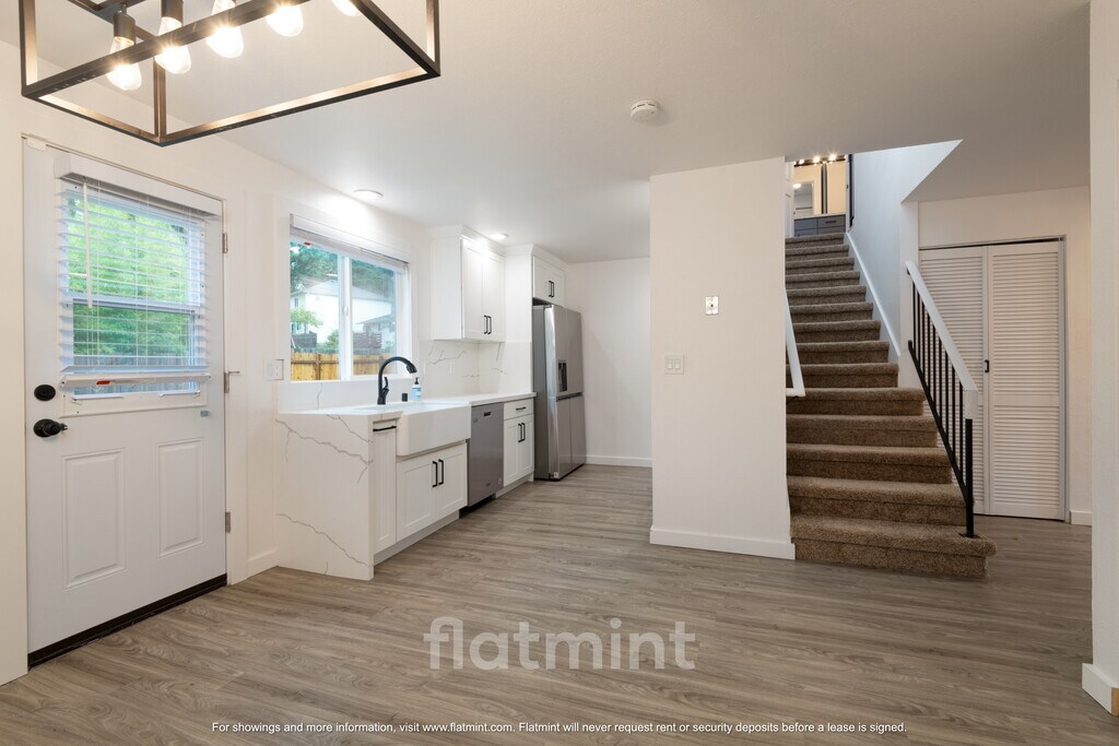 Tucked at the end of a quiet residential street, this stylishly remodeled 3-bedroom, 1.5-bath duplex unit offers comfort, convenience, and modern design in a prime Shoreline location. Step inside to bright, refreshed interiors featuring a newly updated kitchen, contemporary finishes, and an open-concept living and dining area that flows seamlessly and fully fenced shared yard, perfect for outdoor living. All three bedrooms provide ample space for restful retreats or flexible work-from-home options. An attached garage adds everyday convenience and extra storage. water, sewer, garbage disposal, and lawn care included in rent. Just minutes to the new light rail station, groceries, parks, and major commuting routes, this home delivers turn-key living in a rapidly growing and well-connected community. A rare opportunity to enjoy single-family style living with incredible access to everything Shoreline has to offer. Application: Property Viewing: Prospective tenants must view the property before submitting a rental application. Lease Start Date: Available now, lease must start within 21 days or will be subject to higher rate. Application fee: $55 per person over the age of 18 Terms: Lease Term: 12 months, available 12/01/2025 Security Deposit: Equal to one month's rent minus application fees Insurance: Renters Liability Insurance required ($100,000 coverage minimum) Fees: Tenant is responsible for all building move-in and move-out fees if applicable. Utilities: Tenant to Electric, Owner to pay water, sewer, garbage disposal, and lawn care Laundry: In unit Parking: (1) Garage Spot Pets: No pets Disclosures: We do not accept Comprehensive Reusable Tenant Screening Reports as defined by and pursuant to RCW 59.18. Applicants and tenants must independently verify all information before signing the lease. Flatmint and its brokers have established an agency relationship with the property owners, Flatmint is NOT the property manager. Tenants must verify all information, including but not limited to: permits, uses, bed/bath counts, square footage, and school enrollment availability. Tenants are advised to independently investigate all aspects of the property and verify the accuracy of the information through personal inspection or with appropriate professionals. Neither Flatmint nor its agents provide tenant representation. Prospective tenants are encouraged to seek independent representation at their own expense, should they choose to do so. LIC: 23029017 View our Rental Criteria and Application Disclosure at