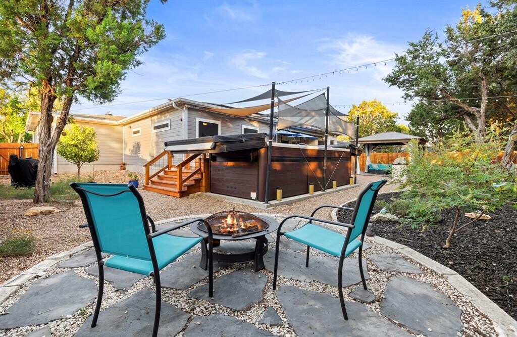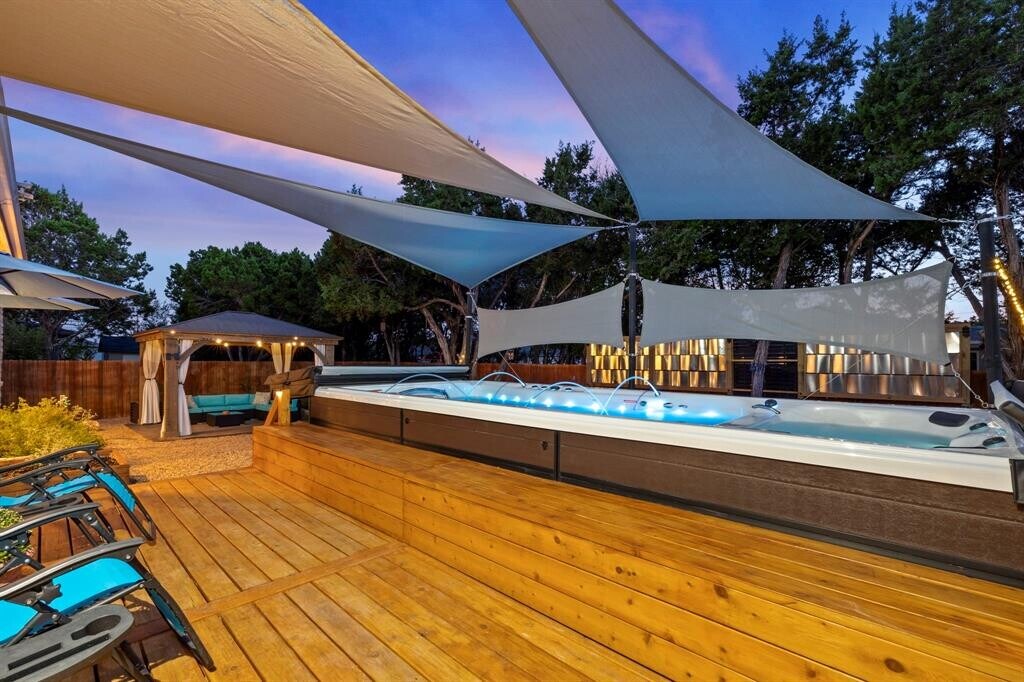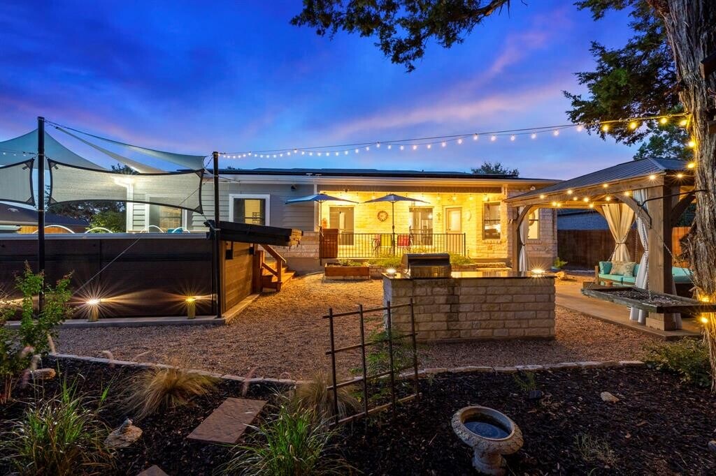 Beautifully updated home located in the heart of Lago Vista! This stunning property offers the perfect blend of comfort, efficiency, and outdoor living. Enjoy an amazing backyard oasis featuring a 19’ swim spa, built-in outdoor grill, gazebo, and xeriscaping for easy maintenance. The home is equipped with solar panels and solar screens, helping keep energy costs low year-round. Inside, you’ll find a spacious open layout with soft-close cabinets, undermount lighting, instant hot water, and thoughtful modern updates throughout. The large primary bedroom provides a serene retreat. This home truly has it all comfort, style, efficiency, and an outdoor space you’ll never want to leave. Experience the best of Texas Hill Country living in Lago Vista!