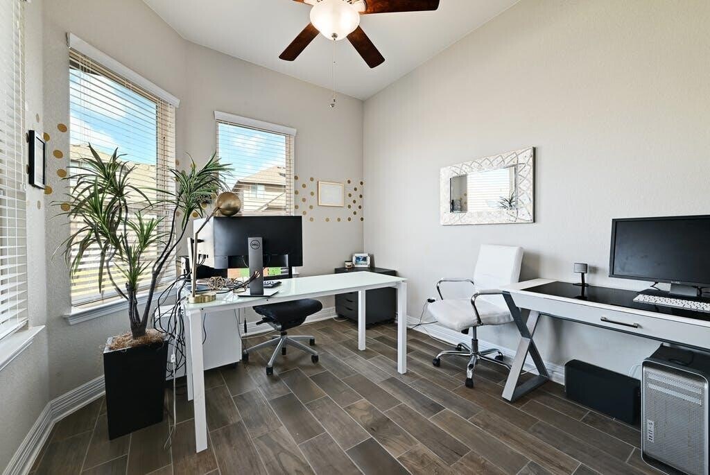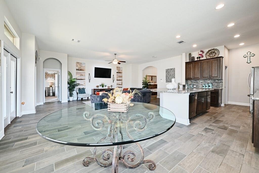 Scott McCordNestled on a quiet cul-de-sac, this charming 1-story rental offers 3 bedrooms and 2 full baths with an open, inviting layout. The spacious living and dining areas flow seamlessly into a bright, oversized kitchen featuring a large center island, granite countertops, and plenty of cabinetry perfect for everyday living and entertaining. Stylish luxury wood-look tile floors run throughout the main living spaces, while the bedrooms feature durable luxury vinyl plank flooring for added comfort. The primary suite provides a relaxing retreat, two additional bedrooms offer flexibility for family and guests, and a large home office - perfect for those who work from home. The home sits on a huge yard, offering endless space for play, gatherings, or simply enjoying the outdoors. Just a short walk away, residents can take advantage of exceptional community amenities including a resort-style pool, splash pad, basketball court, sport court, playgrounds, and open fields. Located in a highly rated school district, this home combines comfort, convenience, and lifestyle in one desirable package. With its updated finishes, generous living space, and access to top-notch amenities, this property is a rare opportunity to rent a home that truly has it all.
