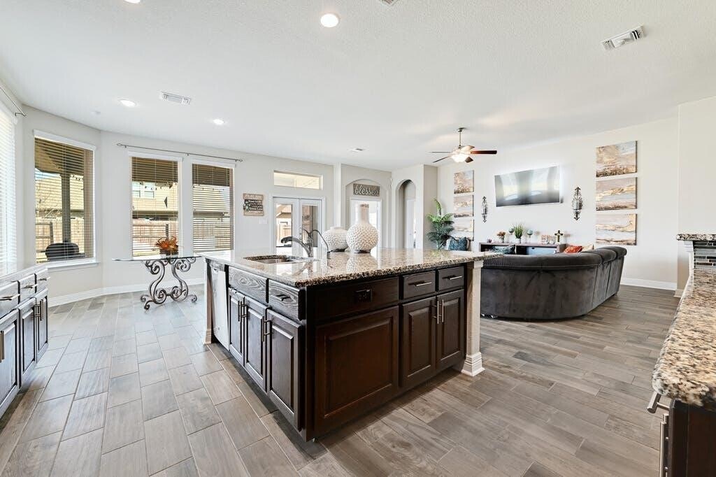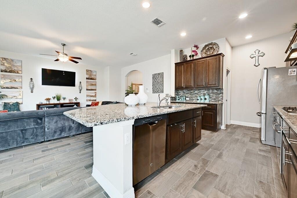Nestled on a quiet cul-de-sac, this charming 1-story rental offers 3 bedrooms and 2 full baths with an open, inviting layout. The spacious living and dining areas flow seamlessly into a bright, oversized kitchen featuring a large center island, granite countertops, and plenty of cabinetry—perfect for everyday living and entertaining. Stylish luxury wood-look tile floors run throughout the main living spaces, while the bedrooms feature durable luxury vinyl plank flooring for added comfort. The primary suite provides a relaxing retreat, two additional bedrooms offer flexibility for family and guests, and a large home office - perfect for those who work from home. The home sits on a huge yard, offering endless space for play, gatherings, or simply enjoying the outdoors. Just a short walk away, residents can take advantage of exceptional community amenities including a resort-style pool, splash pad, basketball court, sport court, playgrounds, and open fields. Located in a highly rated school district, this home combines comfort, convenience, and lifestyle in one desirable package. With its updated finishes, generous living space, and access to top-notch amenities, this property is a rare opportunity to rent a home that truly has it all.