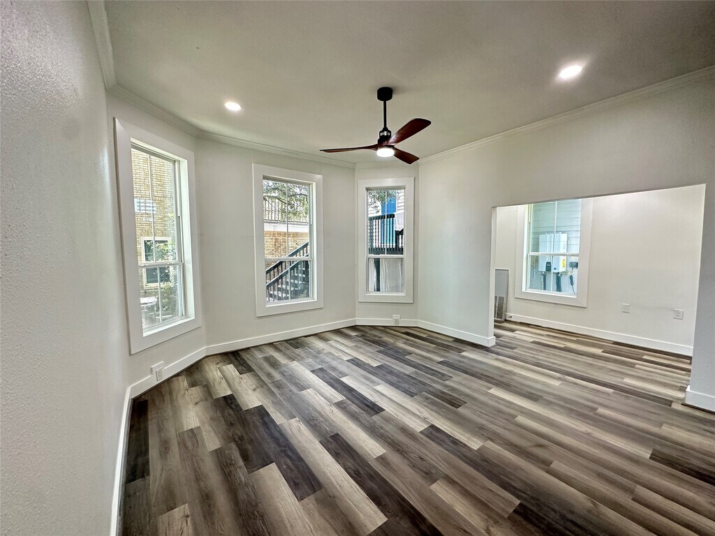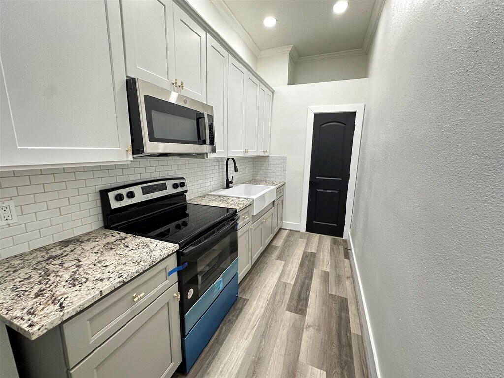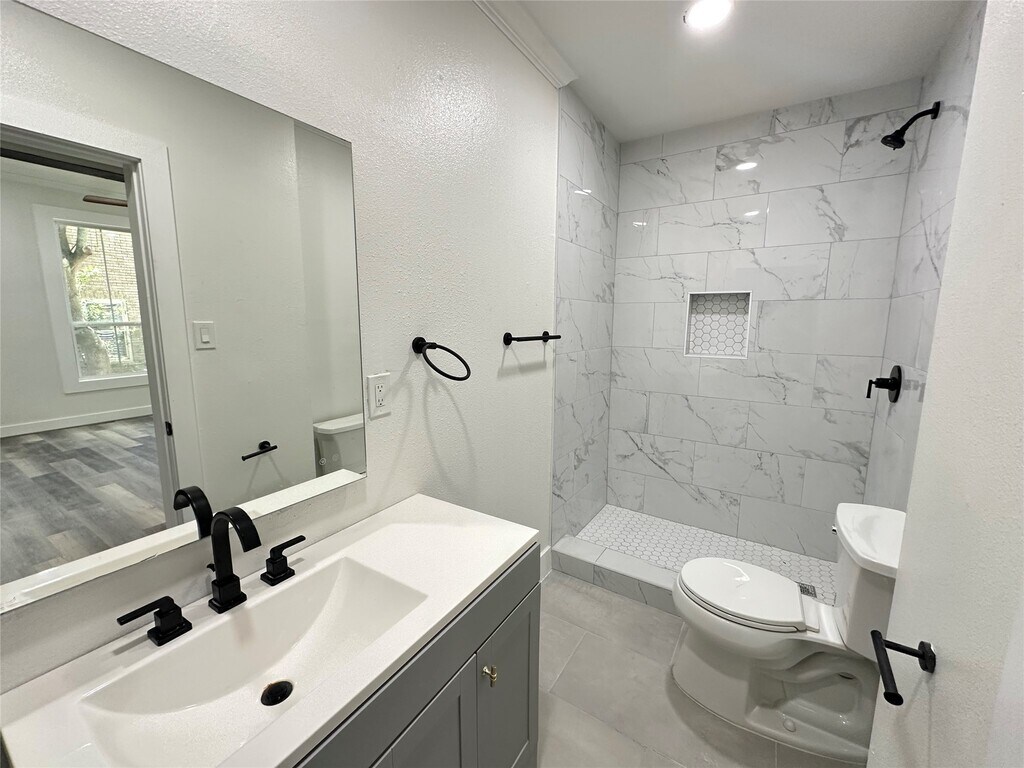 Welcome to this beautifully updated rental in midtown Galveston. This unit is on the first floor,and features a light and bright interior with tall ceilings. You are sure to love the abundance of natural light you will get from the massive windows. This 2 bedroom 1 bathroom home offers modern features such as an electric fireplace in the main bedroom,new ceiling fans,central heat and air,and a beautifully tiled shower in the bathroom. The kitchen offers new stainless steel appliances and stone countertops. Coin operated washer and dryer is in the garage. This home is only available on a month to month bases. Schedule your showing today. MLS# 66330759