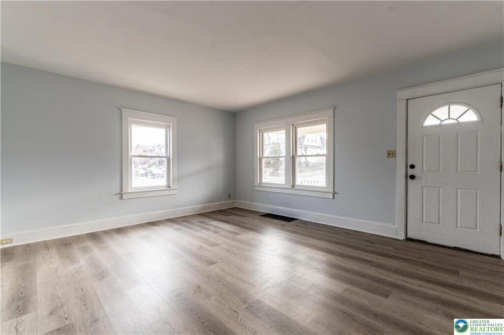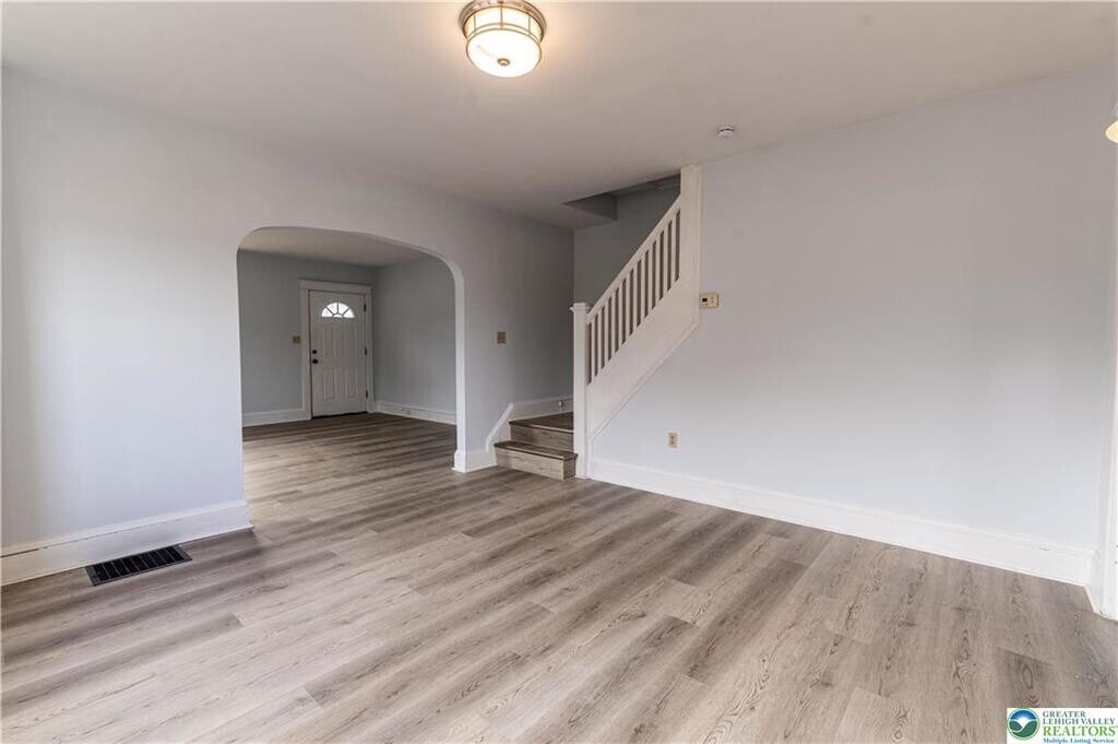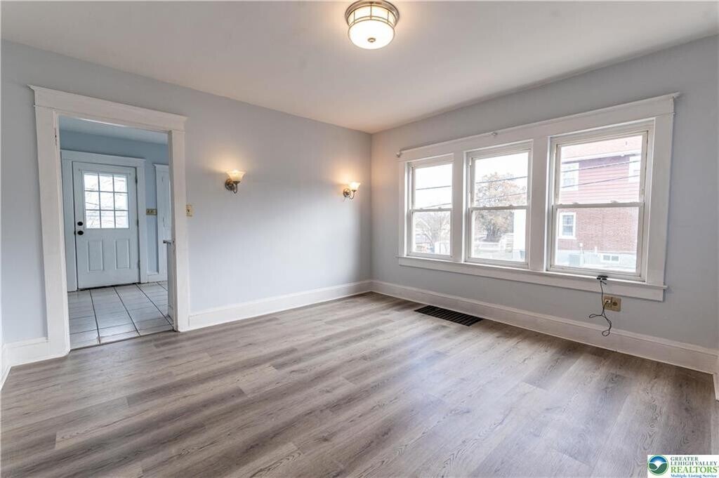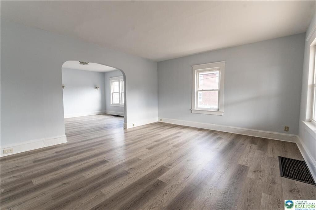 Great Location! Don't miss the opportunity to rent this amazing Wilson Borough, well-maintained three generously sized bedroom, one bath home on a desirable corner lot in Wilson Borough. Move right into this spacious residence featuring high ceilings, new engineered vinyl plank flooring throughout, central air, a newly updated bathroom, and a refreshed kitchen with new countertops. The first floor offers a large family room with an open-concept flow to the spacious dining room and eat-in kitchen, creating a bright and inviting space filled with natural light. Enjoy outdoor living in the nice yard, perfect for entertaining or relaxing on the covered front porch ideal for morning coffee. A rare and valuable bonus, the property includes use of a one car detached garage in the rear of the property. There are two additional one car garages available for rent. Conveniently located within blocks of St. Luke’s Hospital Easton Campus, Wilson High School, shopping, restaurants, and just minutes to major routes and all the charm of downtown Easton. No pets. All occupants over 18 must complete an online rental applicationm which will include a credit and background check. The fee to process the application is $35 per person. Must have a good FICO credit score and 3x the monthly rent in income. Tenant responsible for all utilities including, gas, electric, water, sewer, trash, lawn care and snow removal. Ready for immediate occupancy.