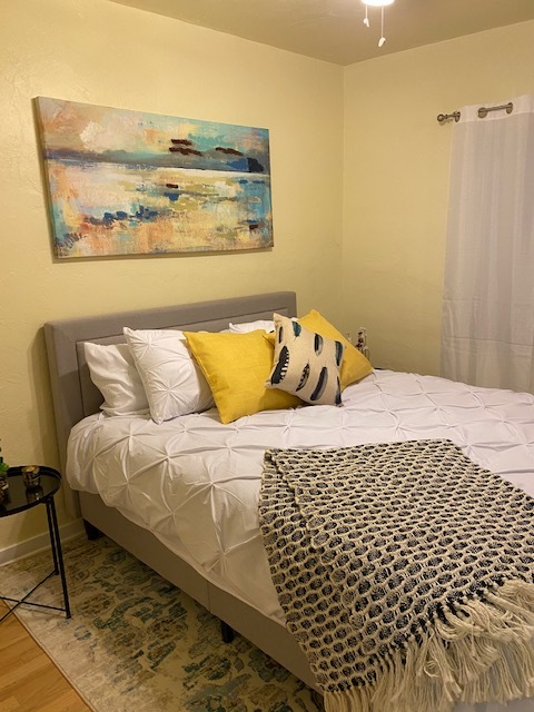 Fully Furnished Condo living at its best. This spacious loft features new and recently refinished hardwood floors is within steps of UNM and has easy access to Nob Hill and Edo. It has a private entrance which features a storage closet, plenty of room to store bicycles and a stairwell with wood floors. The private entrance is large and is not included within the square footage. Additionally, the condo is ''stand alone'' and very private : it does not share any walls with the other units. The space is bright and light filled. Fully Furnished Condo living at its best. This spacious loft features new and recently refinished hardwood floors is within steps of UNM and has easy access to Nob Hill and Edo. It has a private entrance which features a storage closet, plenty of room to store bicycles and a stairwell with wood floors. The private entrance is large and is not included within the square footage. Additionally, the condo is ''stand alone'' and very private : it does not share any walls with the other units. The space is bright and light filled.