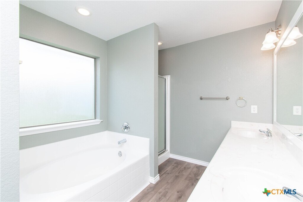 This 3 bedroom,2 bathroom home offers 1,782 square feet with a layout that makes everyday living easy. The main living area features durable flooring and flows into the kitchen with ample cabinet space,a breakfast bar,and refrigerator included. The primary suite is set apart with a tray ceiling,generous space,and an en suite bath with double sinks,a soaking tub,and separate shower. Secondary bedrooms are well-sized,and the second bathroom is conveniently located nearby. A dedicated laundry room adds everyday functionality. Out back,you’ll find a covered patio and a fully fenced yard. Attached two-car garage completes the home.