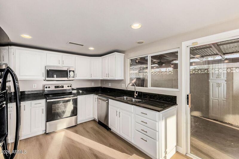 Beautifully updated 4-bedroom, 2-bath single-story home in South Scottsdale offering 1,659 sq. ft. of comfortable living space. This unfurnished home features fresh interior paint, new luxury vinyl plank flooring, new baseboards, soaring vaulted ceilings, and a spacious eat-in kitchen with granite countertops, pantry storage, and included appliances. Situated on a premium corner lot in the desirable Pima Meadows neighborhood, the property includes a rare atrium, private sparkling pool, gazebo, synthetic grass front and back, and a low-maintenance yard perfect for entertaining. Additional features include central air, double-pane windows, inside laundry, a 2-car attached garage, and a newer HVAC system. Conveniently located near parks, biking and walking paths, shopping, dining, Old Town Scottsdale, Tempe, and major freeway access. A rare opportunity to enjoy updated Scottsdale living in a well-maintained home with exceptional outdoor space.